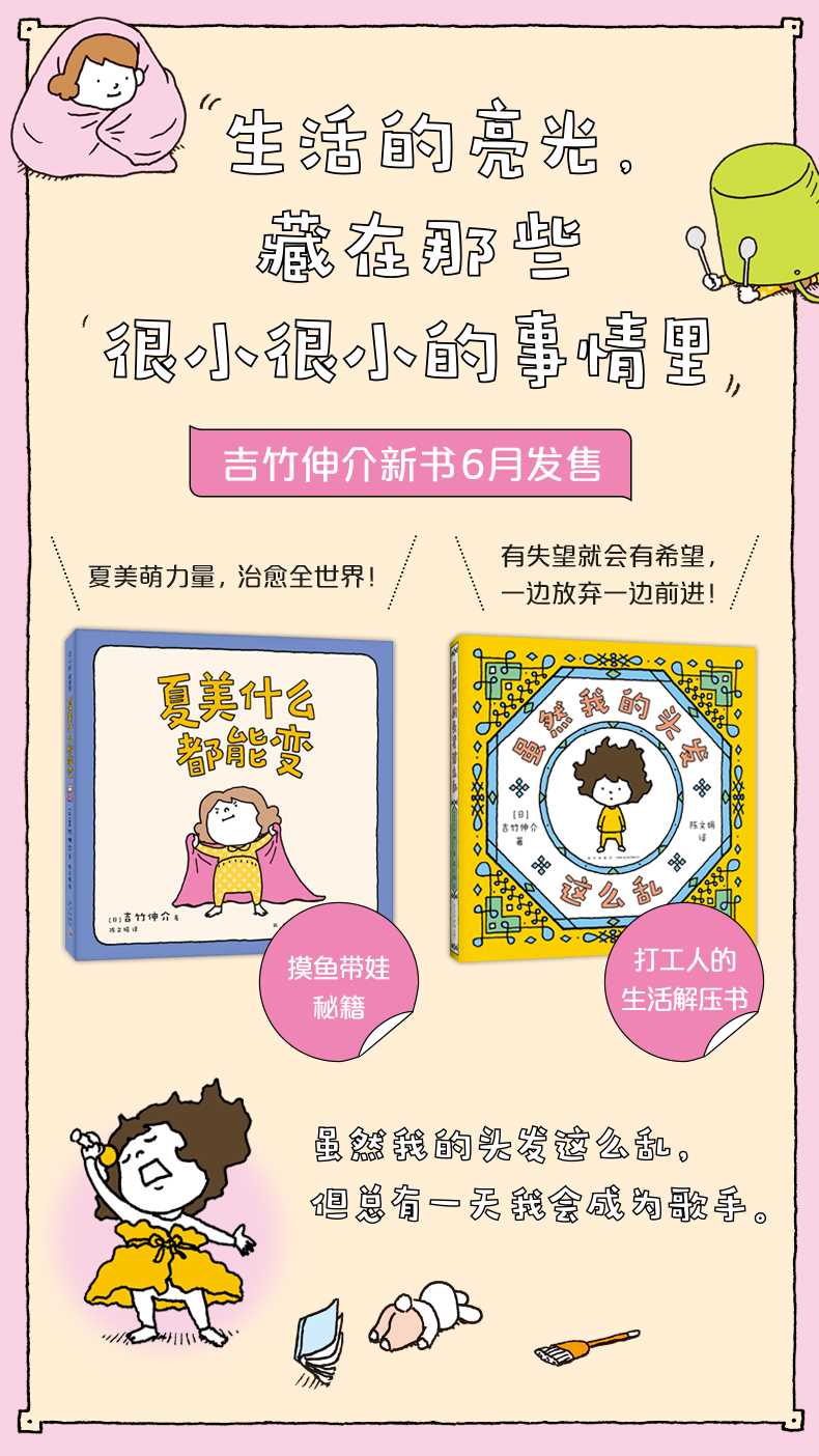 我是一个很容易对生活产生厌倦的人,但还是觉得应该抓住日常生活中的那些微小的希望、一丝好奇心、小小的乐趣,将它们作为抓手一天一天地生活下去。这本书中,写的就是凭借着那些微不足道的、小小的抓手,认真生活着的人们。mdash;mdash;吉竹伸介