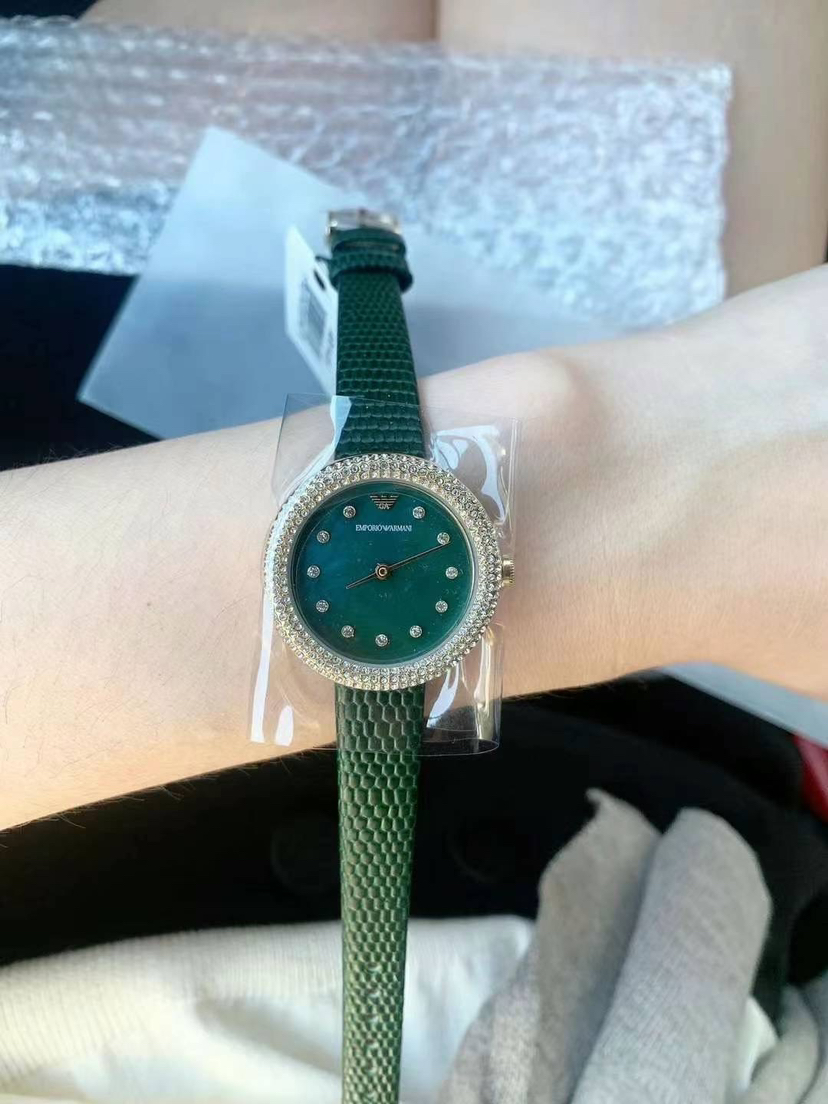🇺🇸1050包邮!阿玛尼AR11419满天星手表 ,佟丽娅大美女同款,复古祖母绿30mm水钻镶小圆盘女表!
