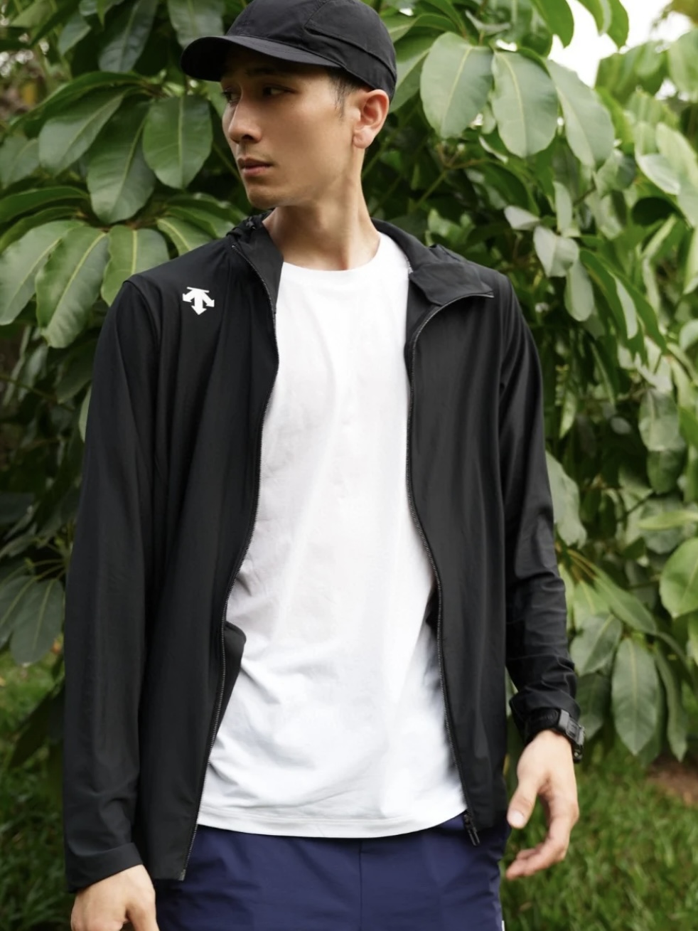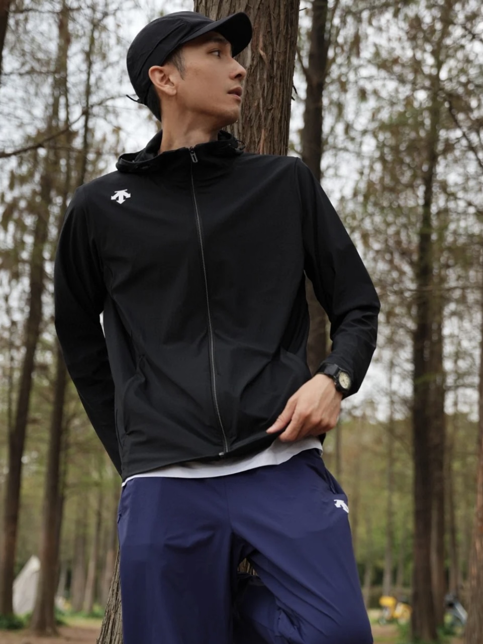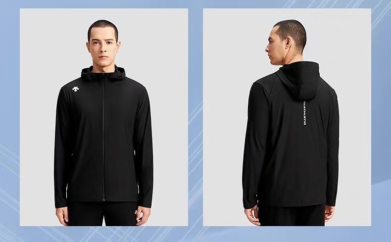 DES综训男士防晒服防晒衣UPF50外套针织上衣新款,立体修身剪裁,增加高强度活动的透气性灵活性,可调帽子抽绳,倍加舒适