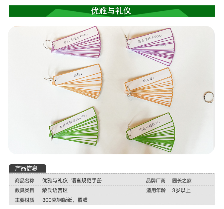 蒙台梭利教具卡片幼儿园《蒙氏语言规范-优雅与礼仪》幼儿操作卡