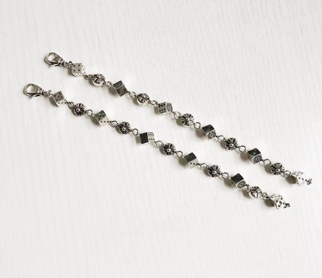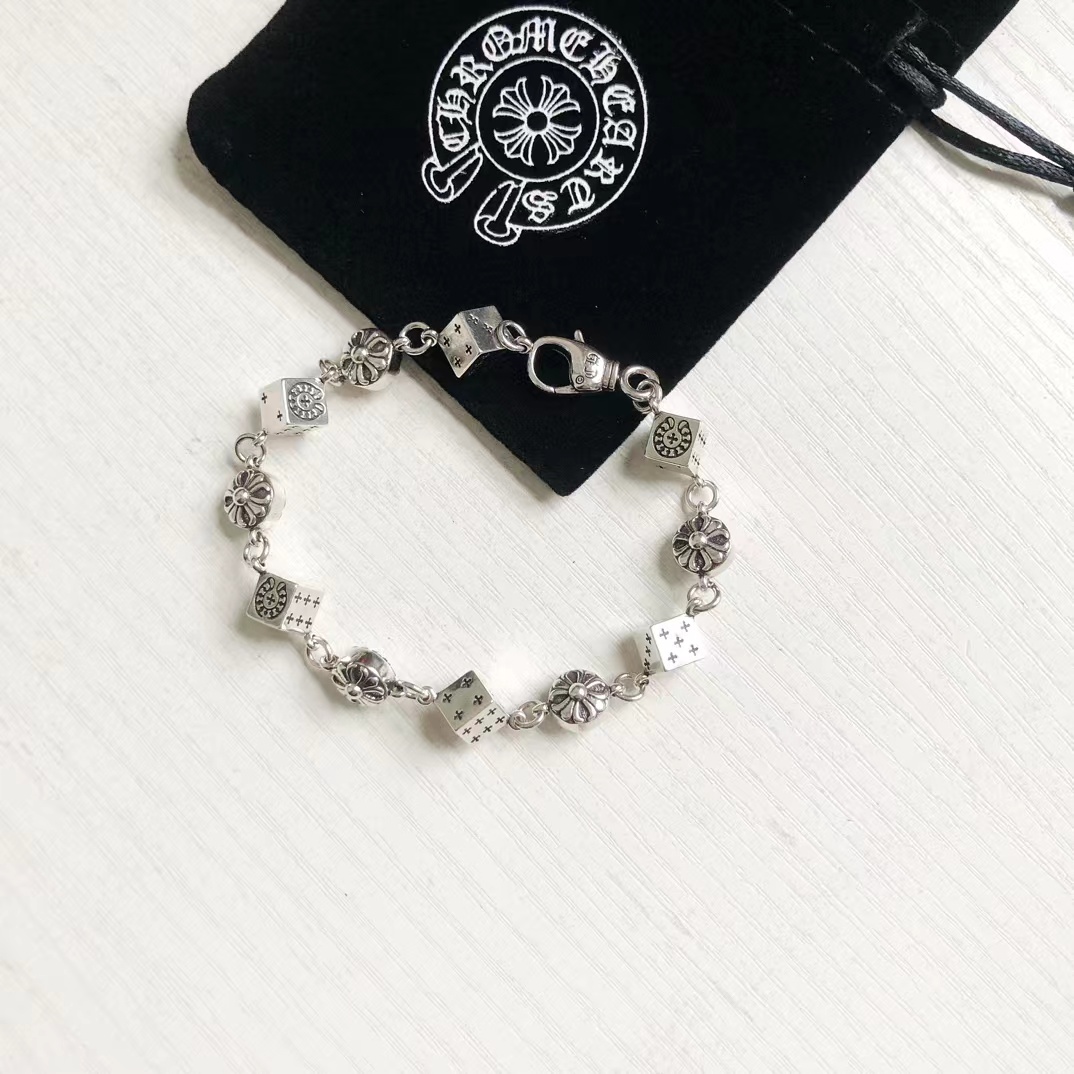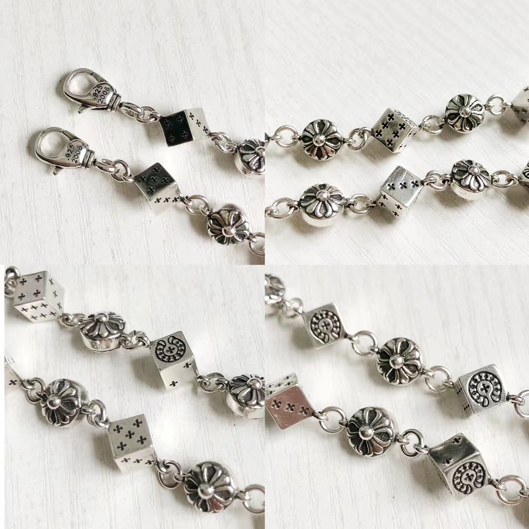 骰子十字花手链 泰银工艺 别具一格的设计风格 街头的耀眼夺目的载体 骰子手链 925镀银材质 女生也可以戴的 可以调节大小 戴起来也是炒鸡酷 炒鸡帅气 设计感爆棚 个性十足 复古的设计风格 骰子和精典的十花结合 更具有魅力色彩