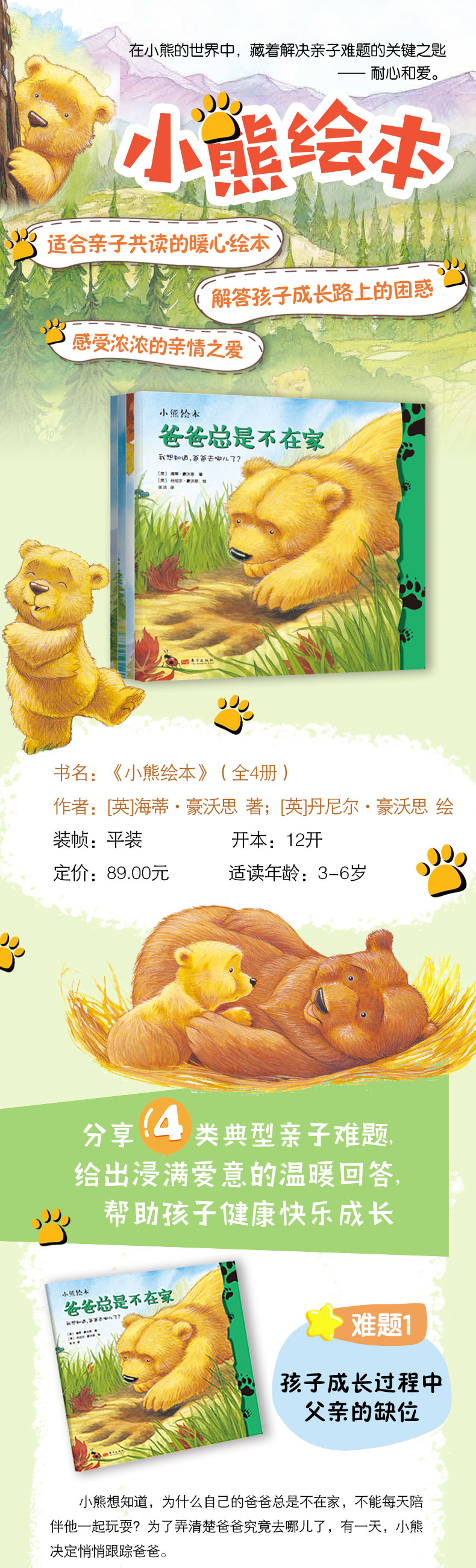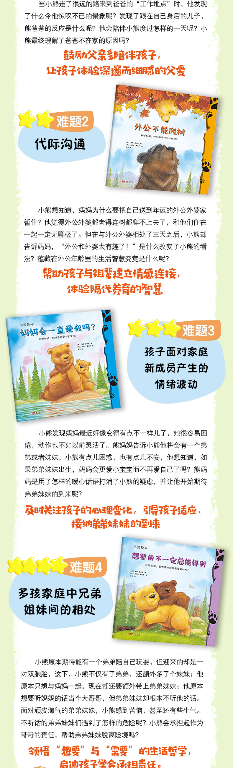 【连岳专享】《小熊绘本(全4册)》解决二胎、父亲缺位、祖孙辈相处等热点家庭教育问题的生动示范教材!