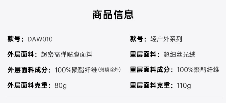 大牌同款防风防水防污修身立领冲锋衣 YKK拉链户外露营徒步登山服DQ 00 DAW010