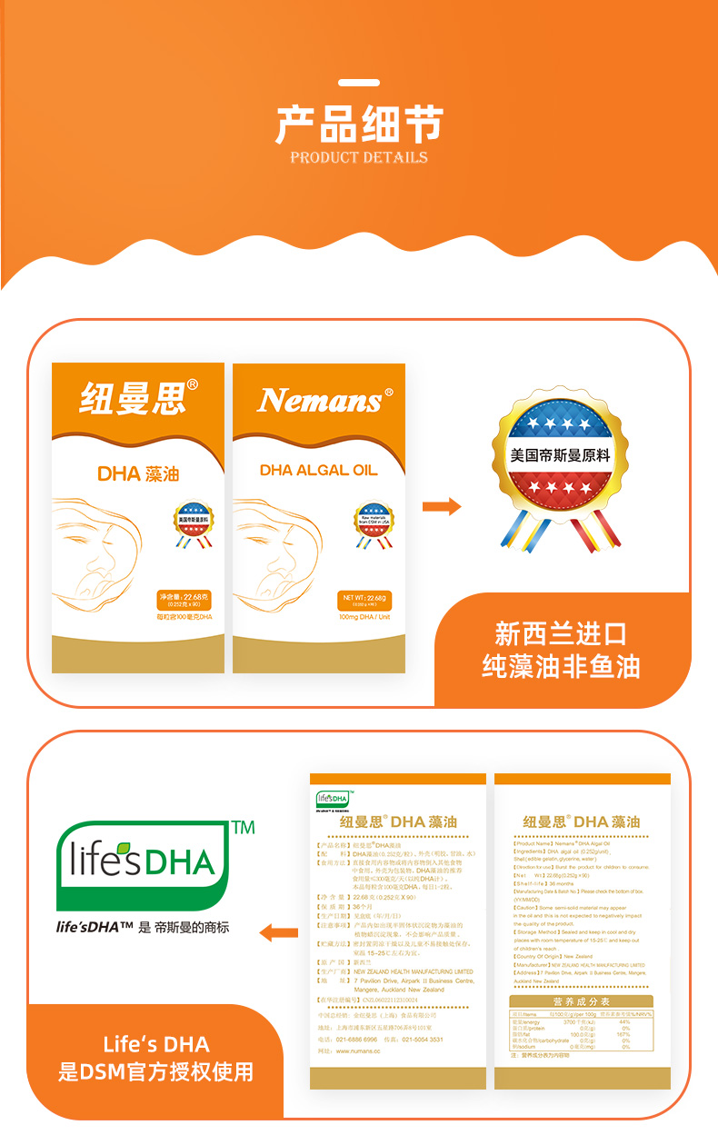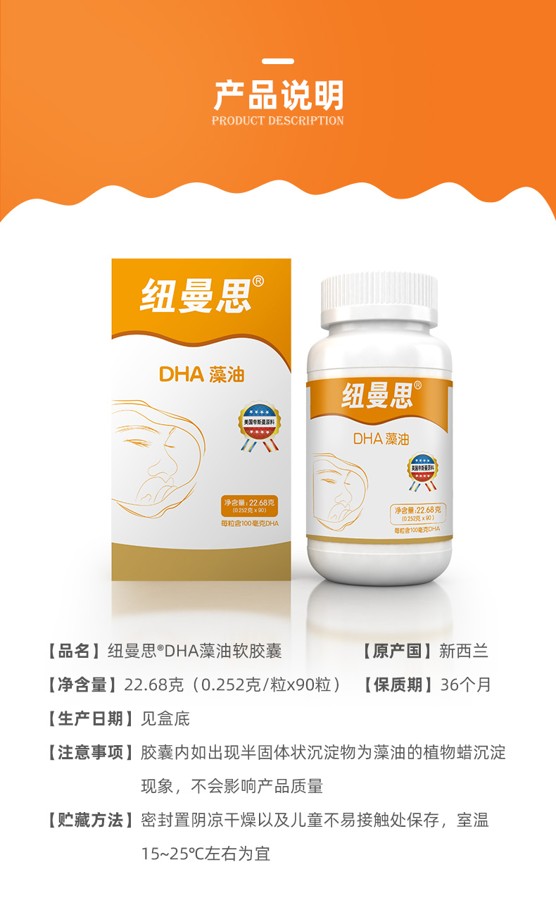 纽曼思新西兰进口海藻油DHA儿童软胶囊90粒装