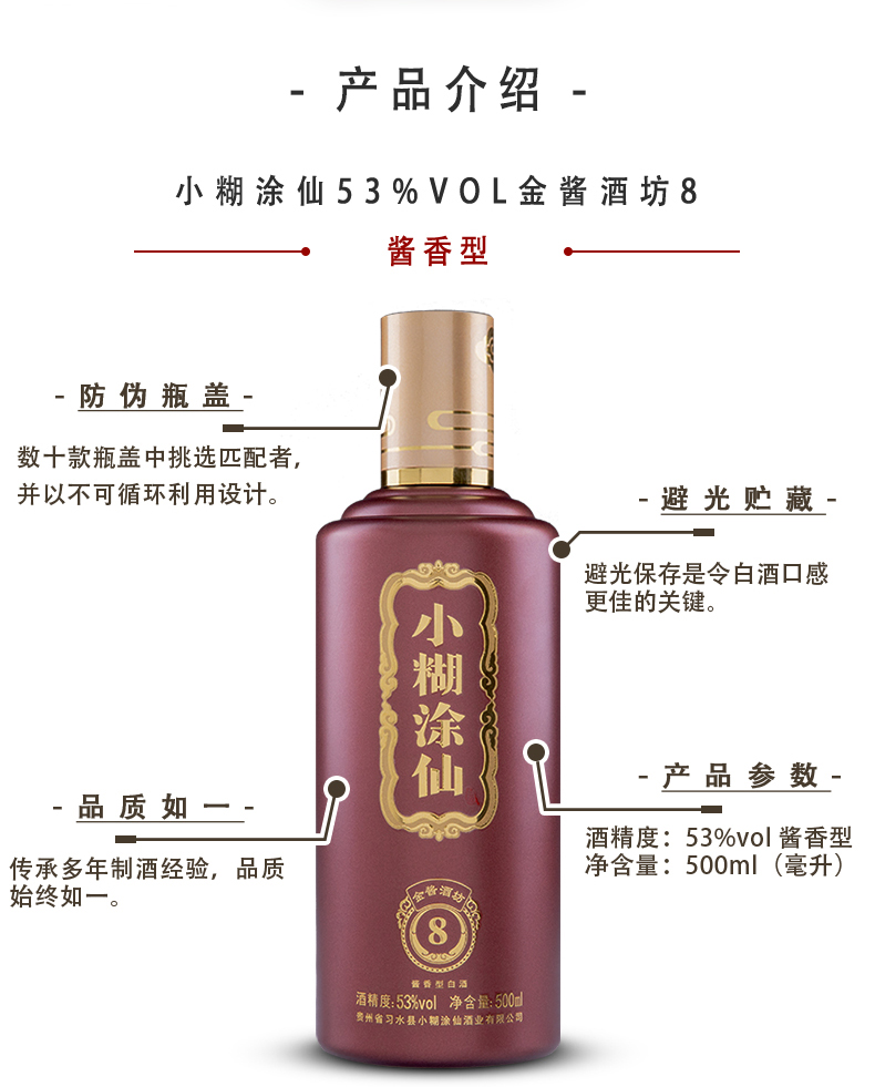 小糊涂仙(金酱酒坊8)酱香型白酒 500ml(53度)