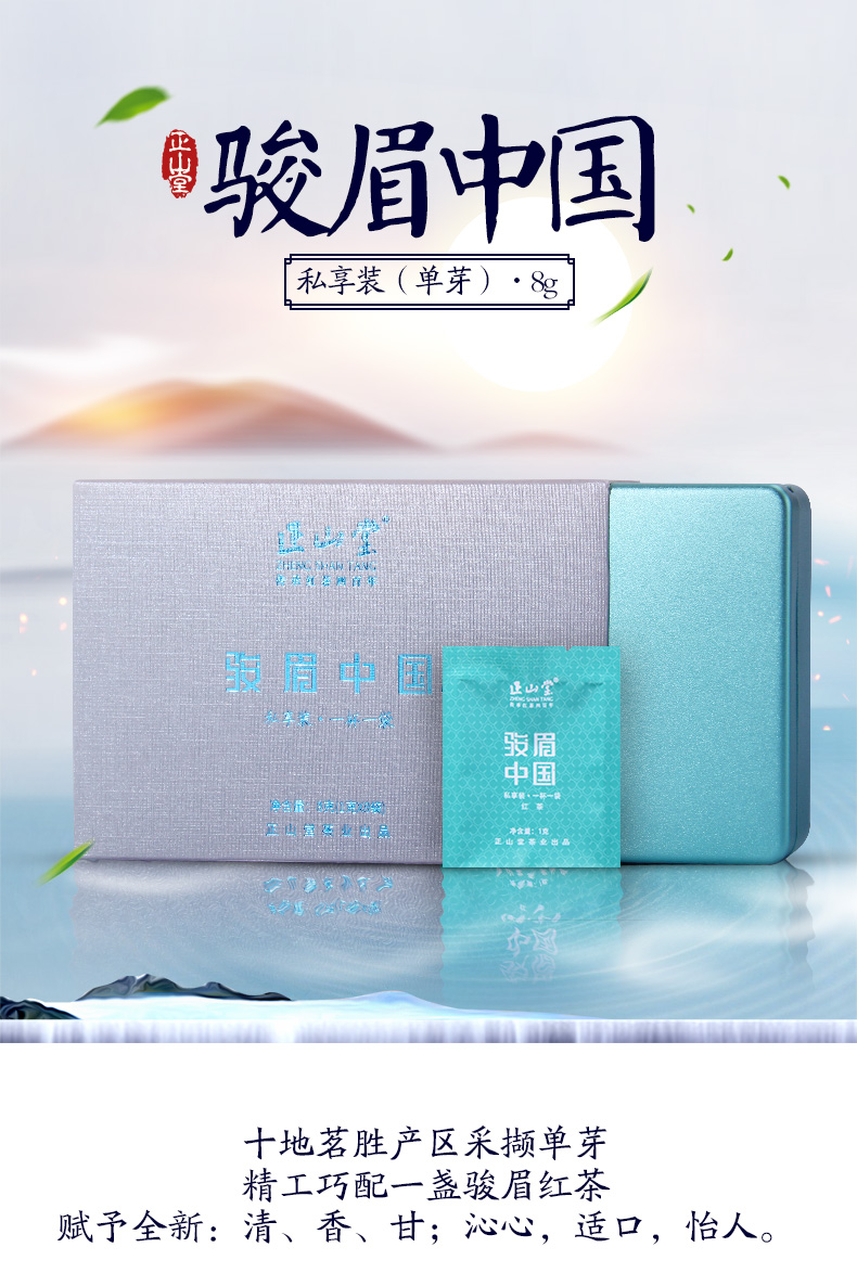 正山堂骏眉中国 单芽私享装 特级红茶十大产区茶叶便携装一杯一袋8g