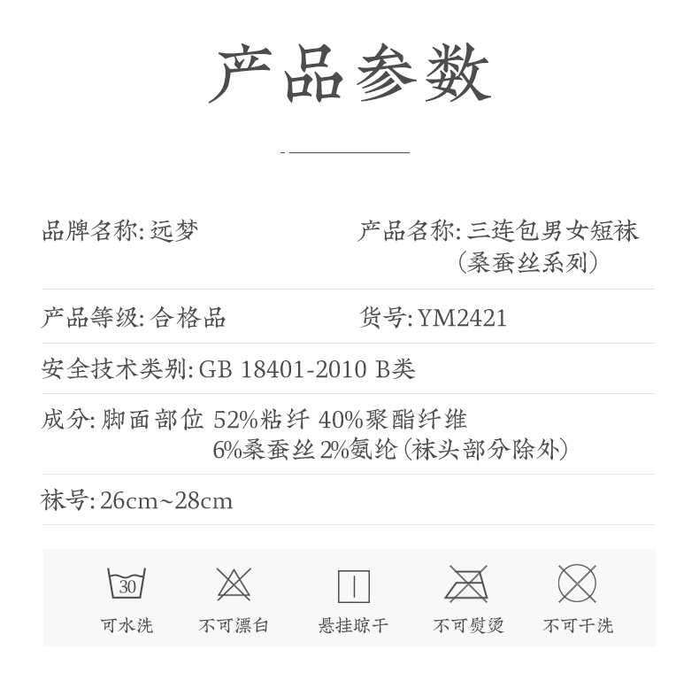 【远梦】三连包男/女短袜(桑蚕丝系列)YM2421