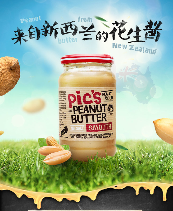 [屁侠推荐]Pic's皮卡思 新西兰花生酱 拒绝一切添加剂 高蛋白食物 380g/瓶