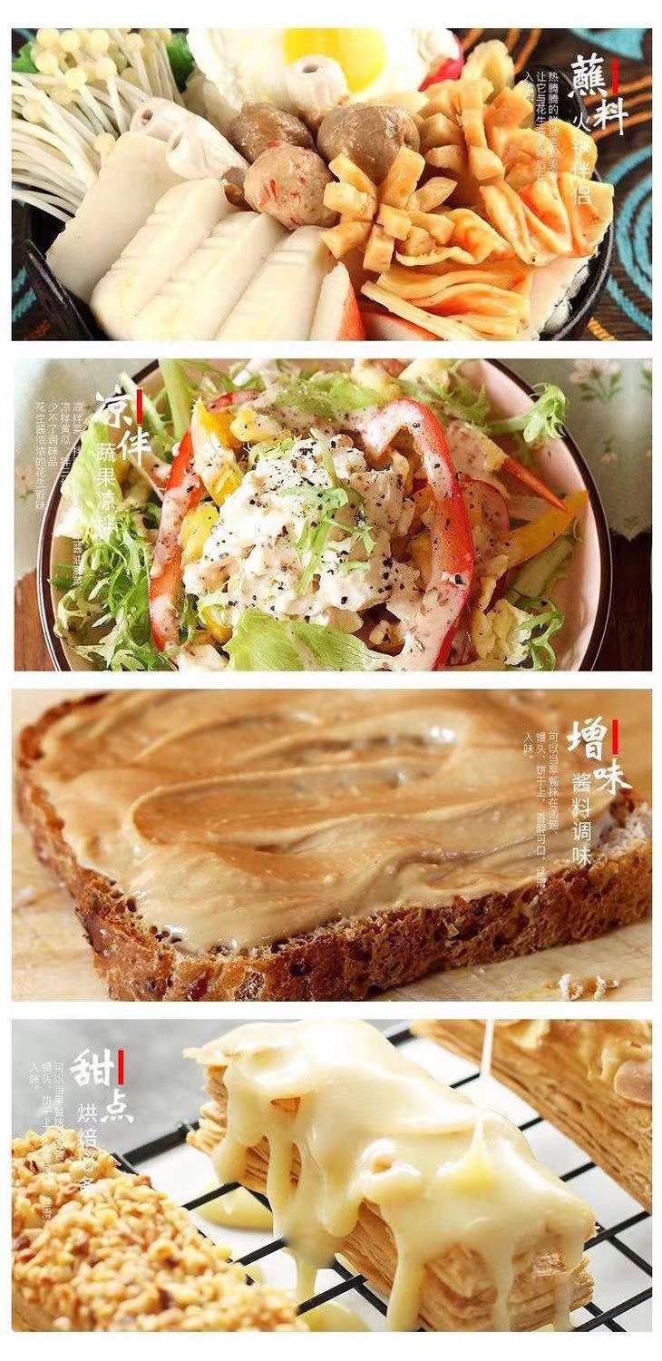 花生酱的用途我想我真的也不用多说了,反正就是你想怎么吃就怎么吃,直接开盖往嘴里塞一勺也会有惊喜的花生酱,更别说用来拌沙拉、拌凉面了,我也很喜欢调火锅蘸酱的时候加一勺,真的超级无敌香!夏天也可以用来做做沙冰什么的,反正就是:你家,一定要备一瓶!