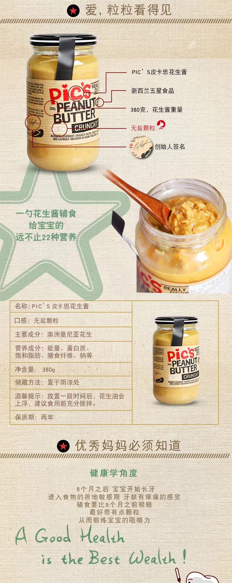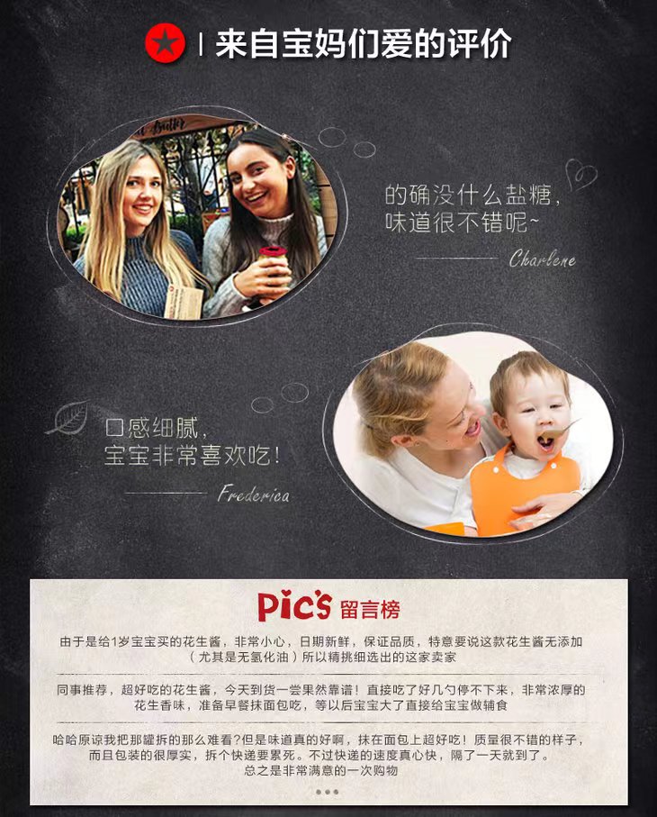一直在为我的实体店找各种好吃的零食和酒水,结果先被我看上的居然是这样一款——花生酱。这款大名在外的花生酱,应该很多宝妈一看到就啧啧称赞的吧!我身边好多朋友宝宝一岁左右就有开始吃这款花生酱当辅餐的,然后家里都是一箱箱囤的!真的有点夸张的。
