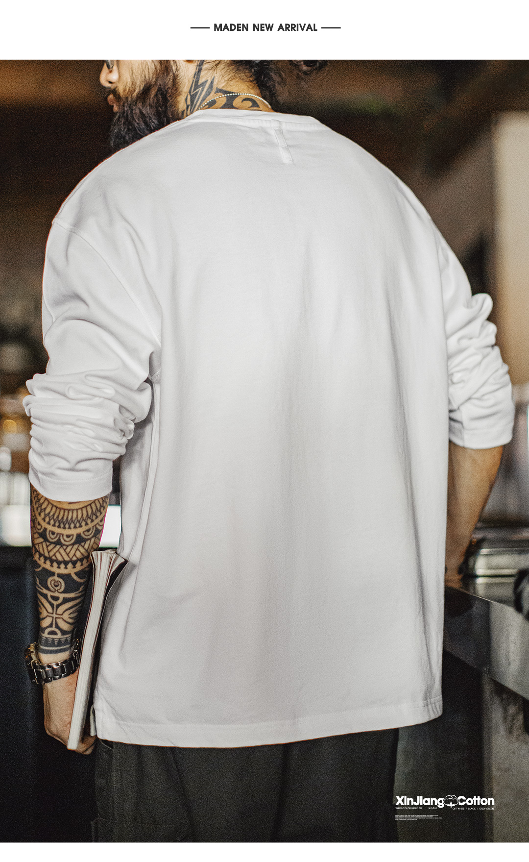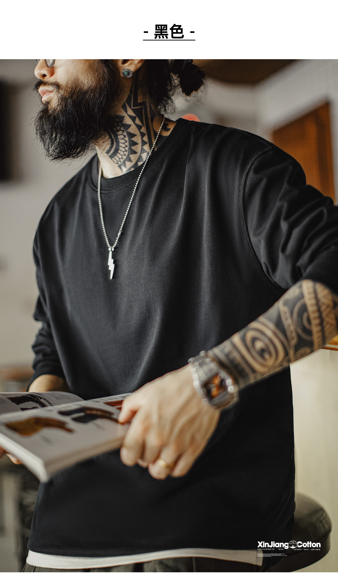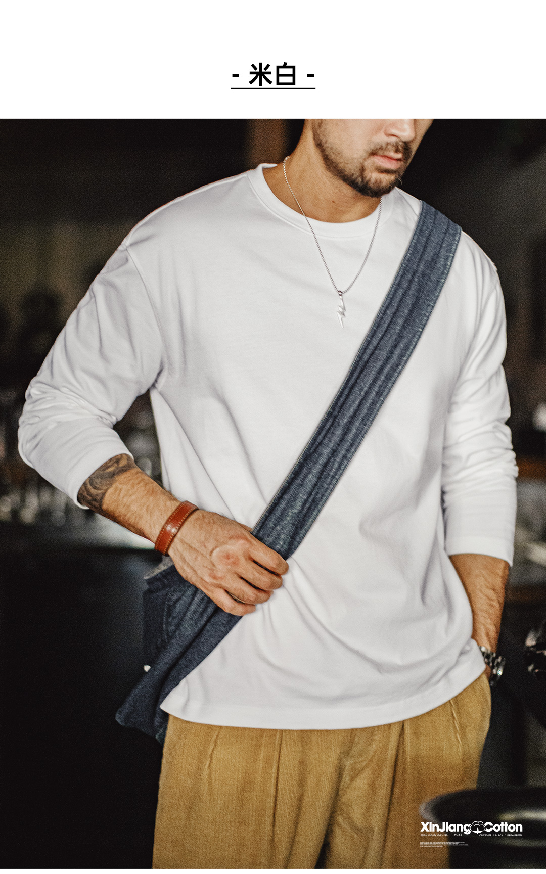 马登工装新疆纯棉长袖T恤纯色内搭打底白色重磅高克重体恤男秋季