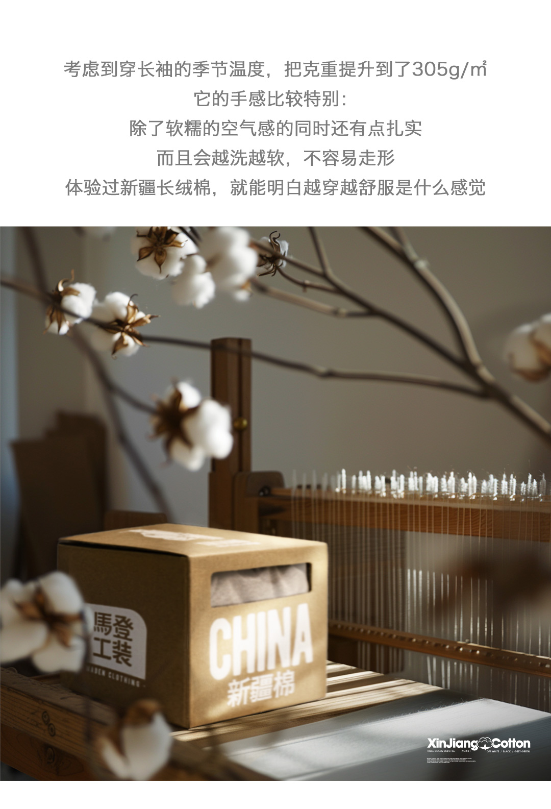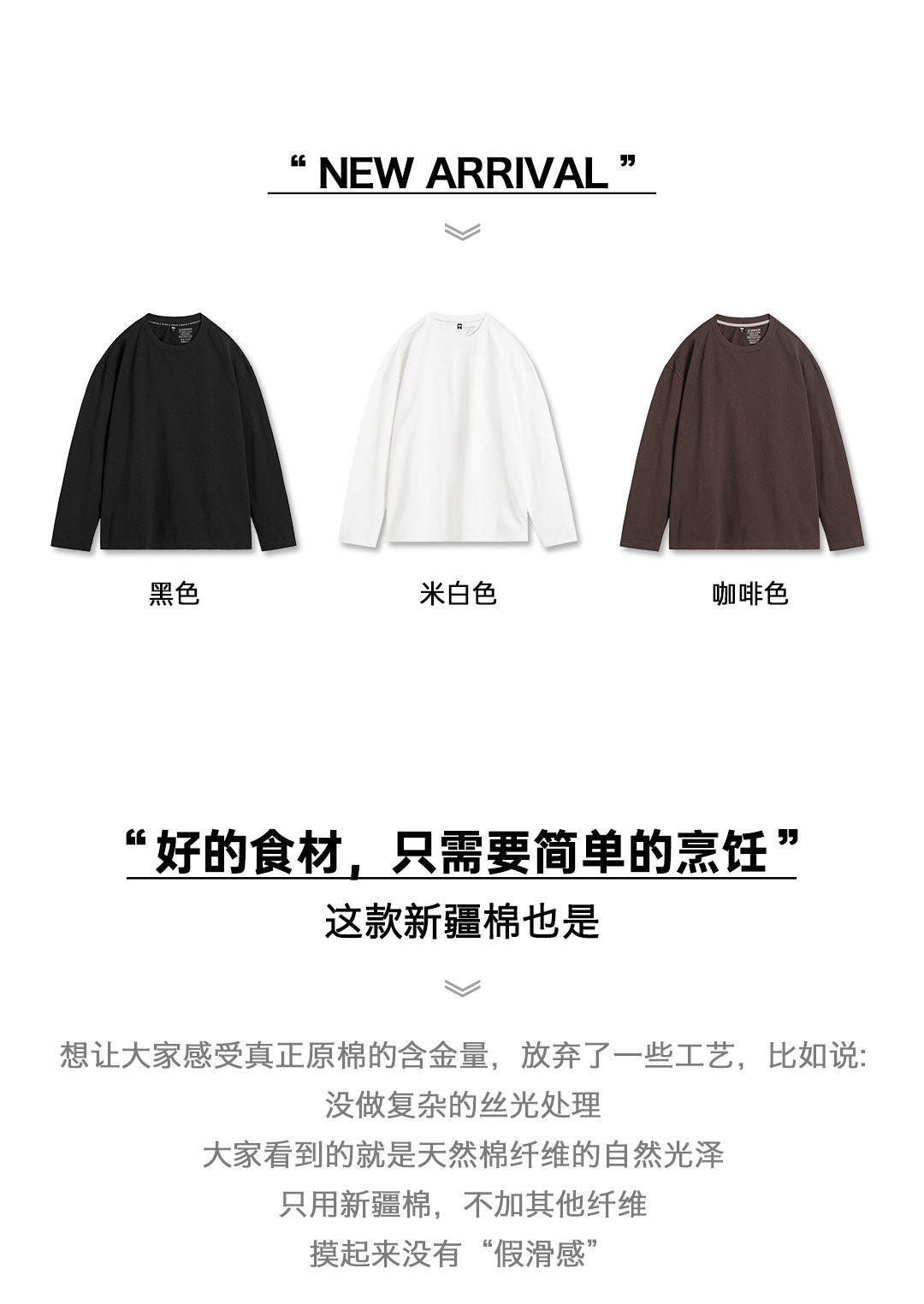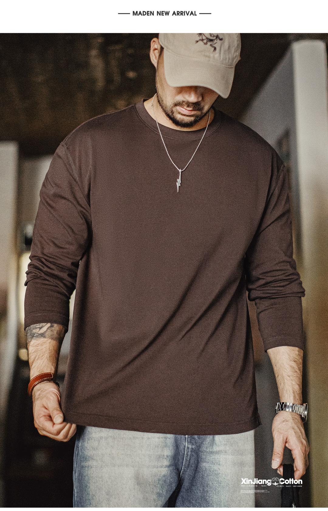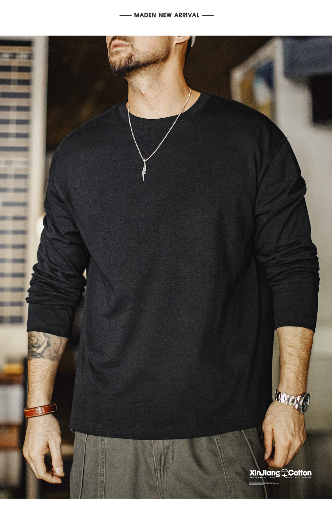 马登工装新疆纯棉长袖T恤纯色内搭打底白色重磅高克重体恤男秋季