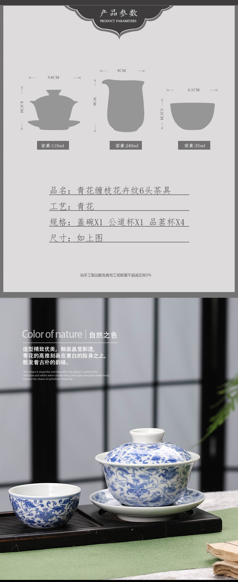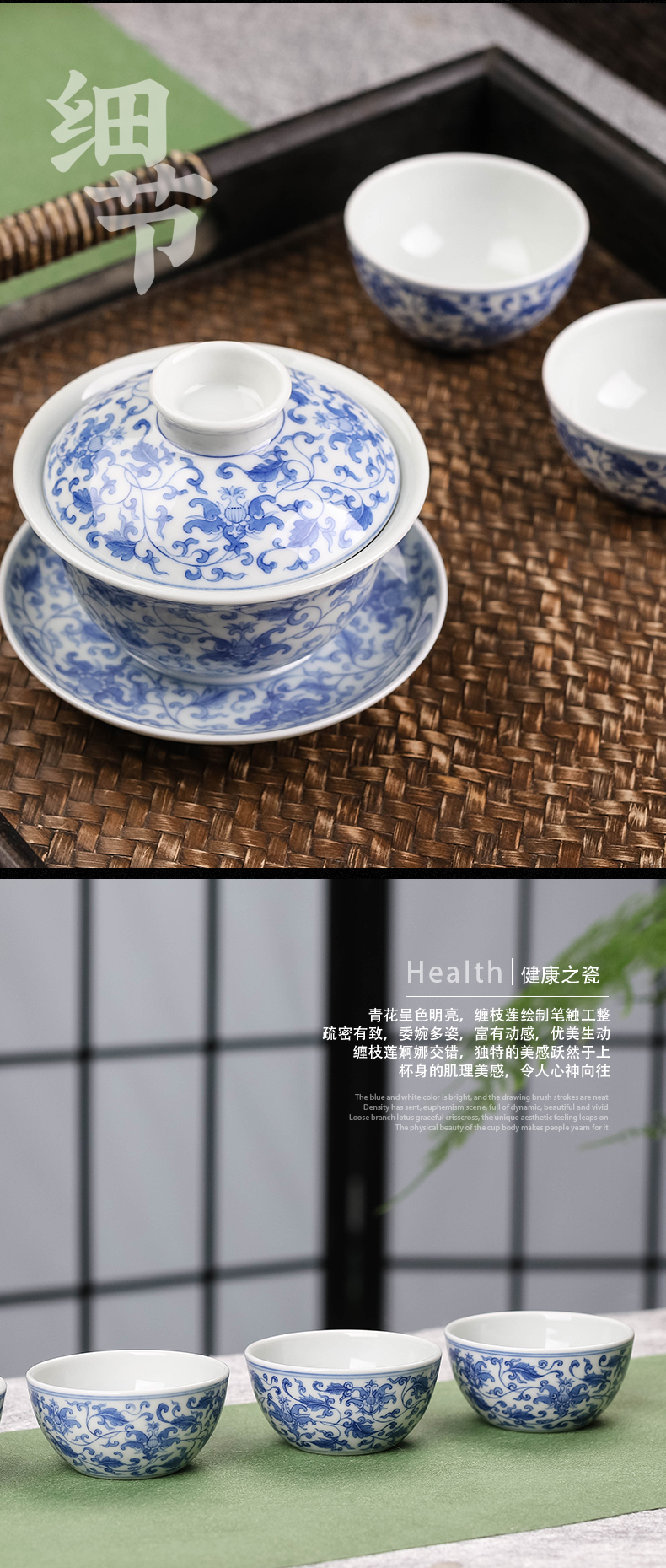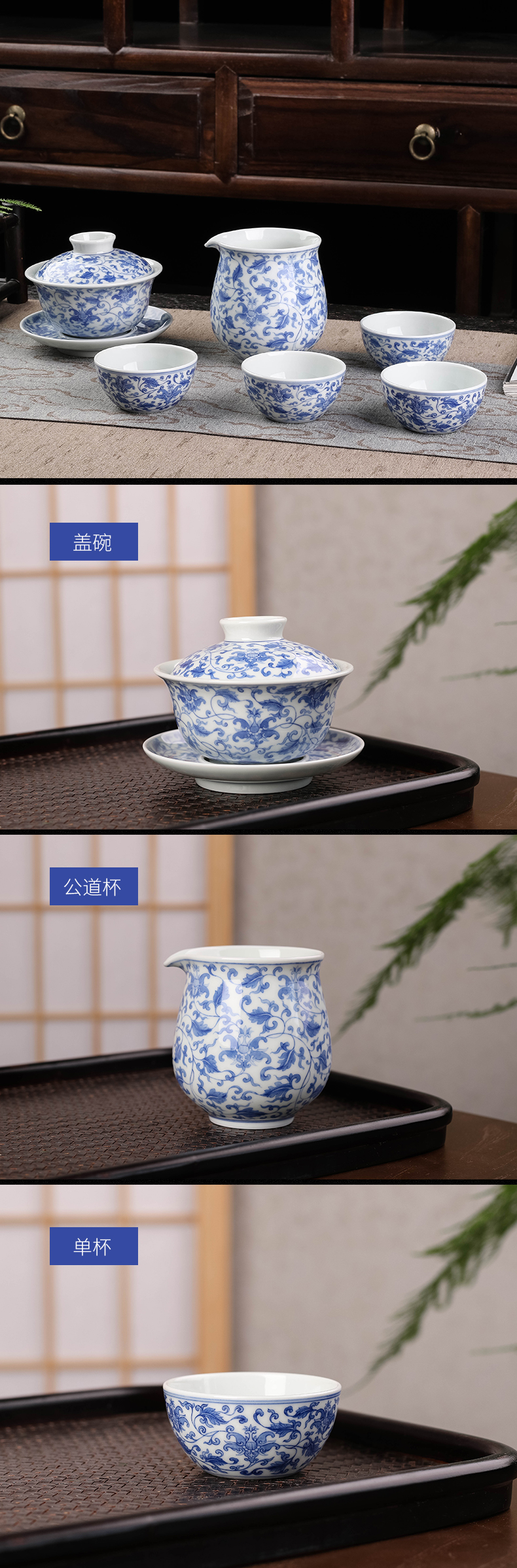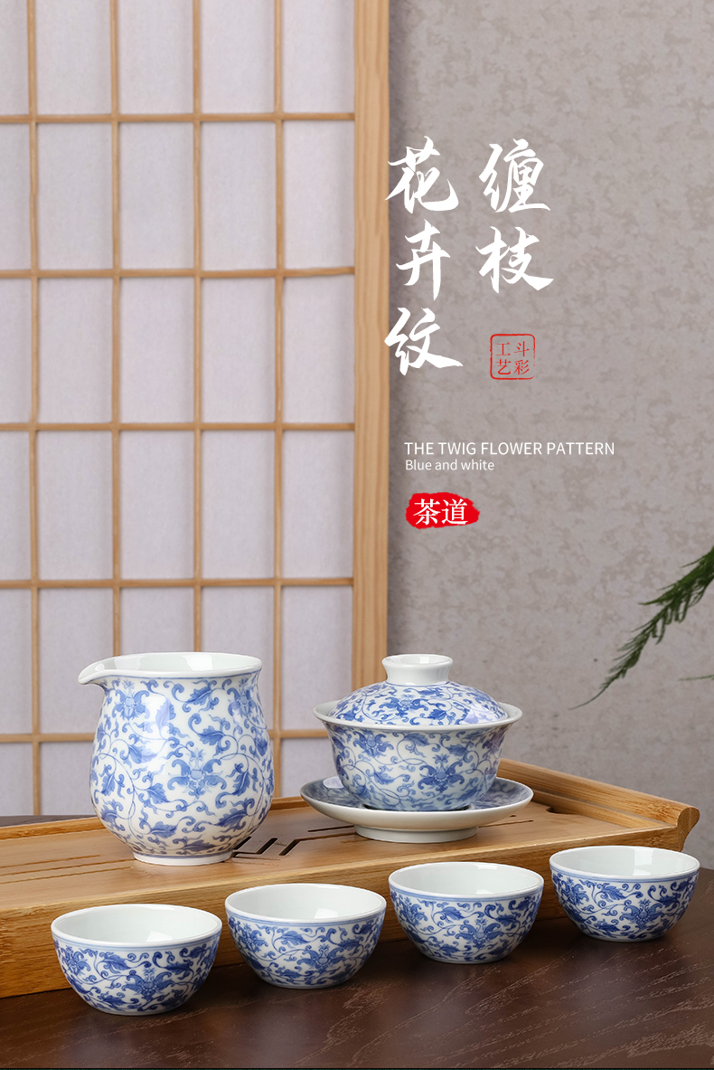 青花缠枝宝相花纹6头茶具