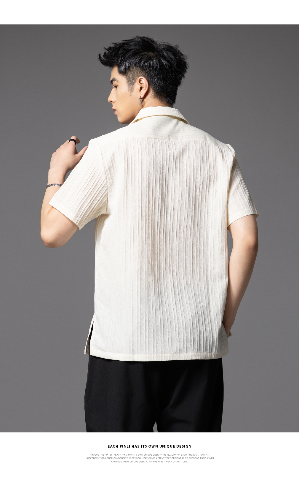PINLI品立春季新款宽松五分袖衬衣提花蝙蝠袖潮牌男中袖衬衫B253113002