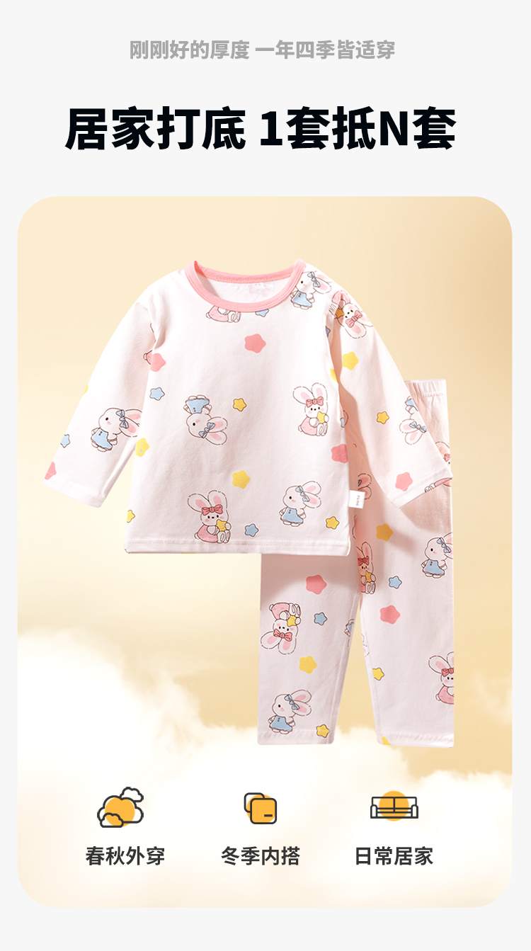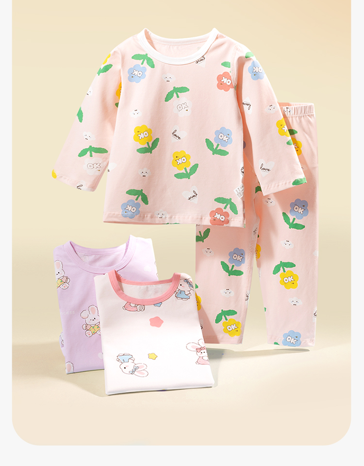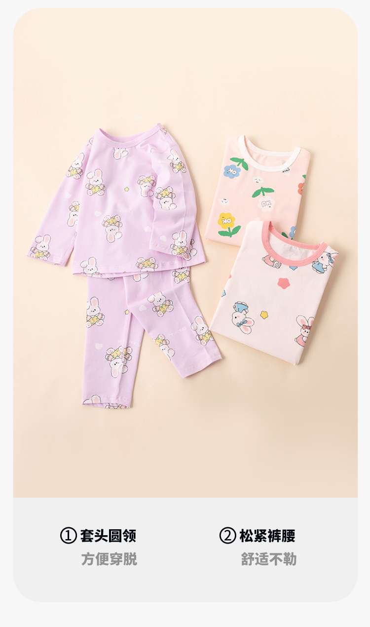 贝贝怡春秋宝宝套头套装女童家居服两件套儿童睡衣空调服233T2639