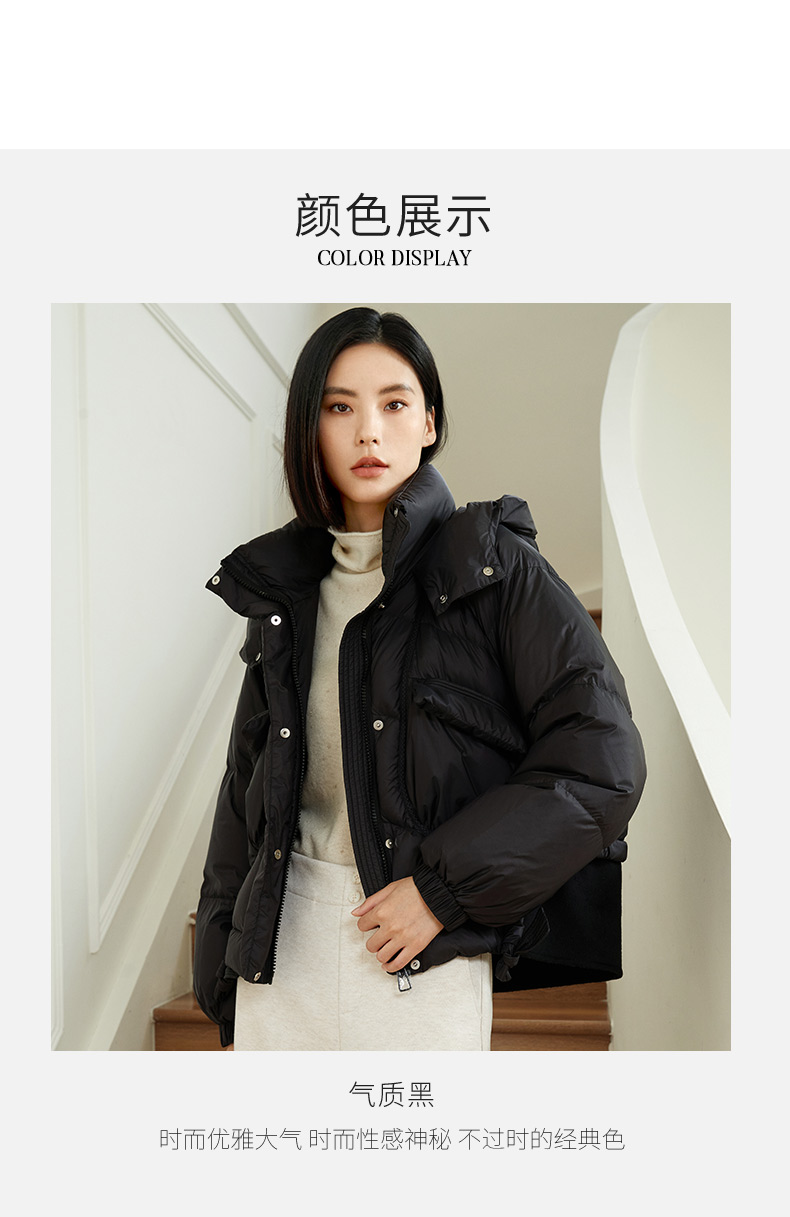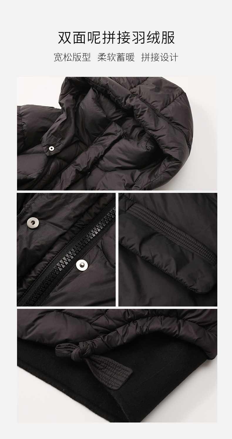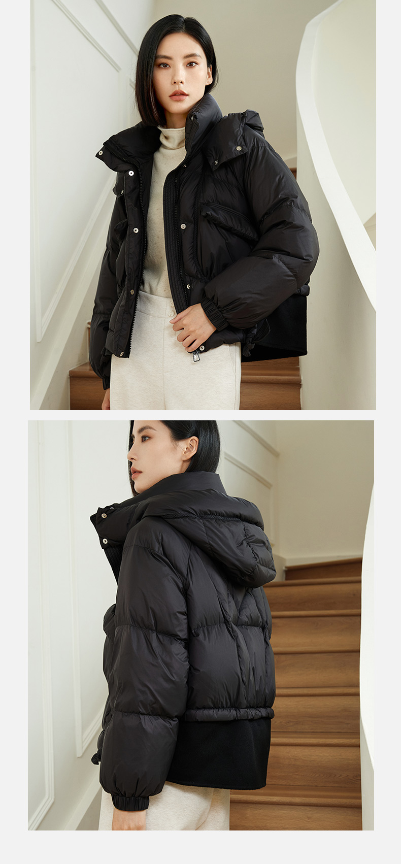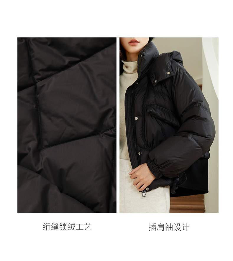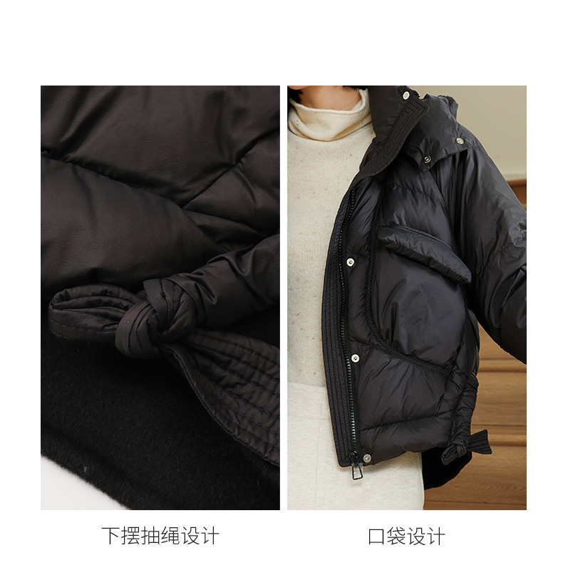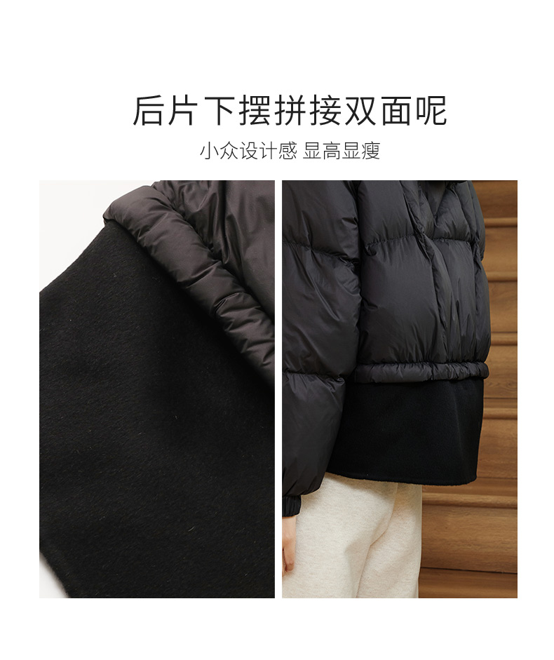 玳莎阔版软糯短款羽绒服女冬季新款宽松双面呢拼接设计感外套 DD41304