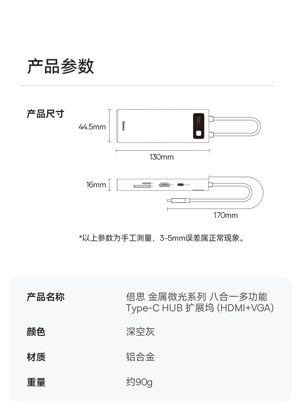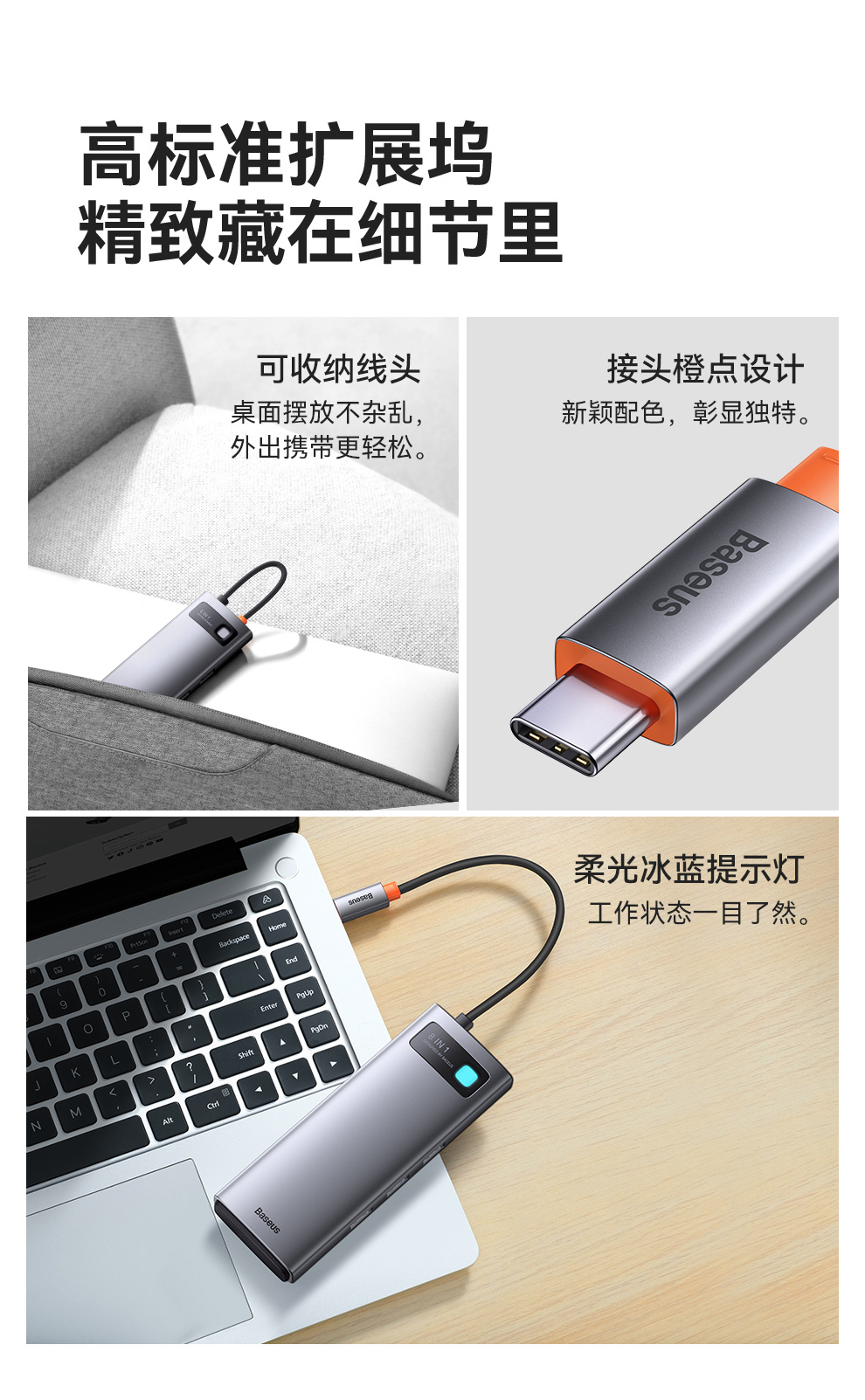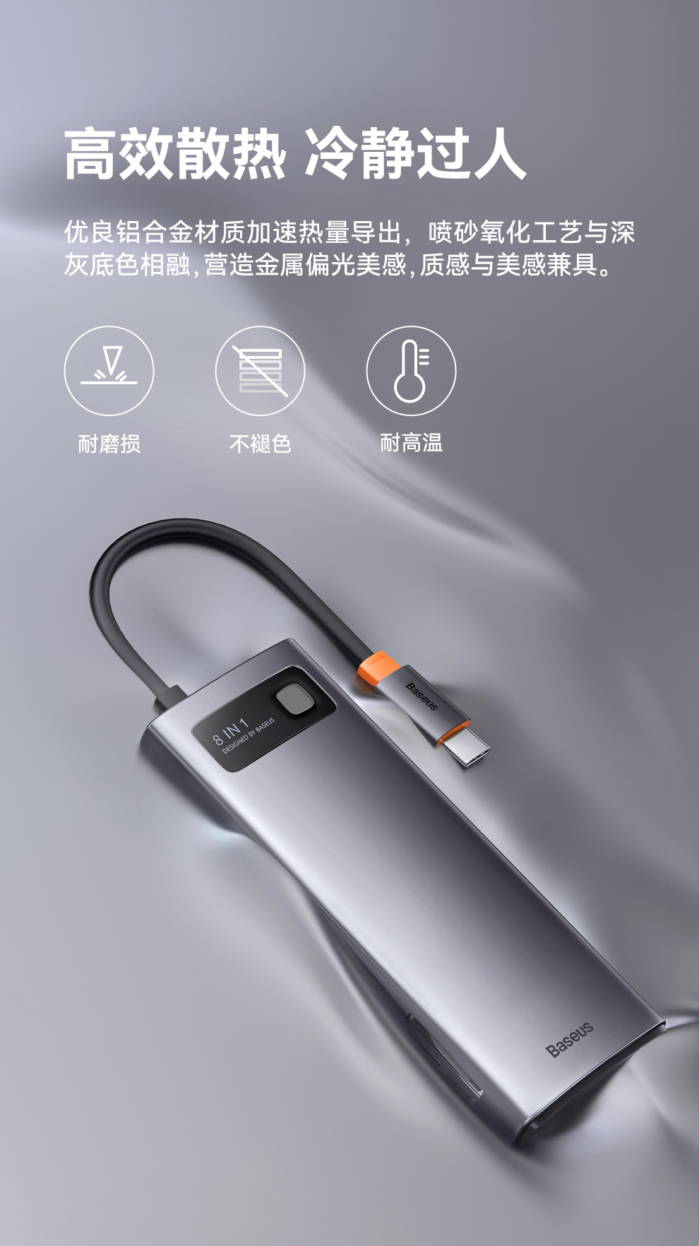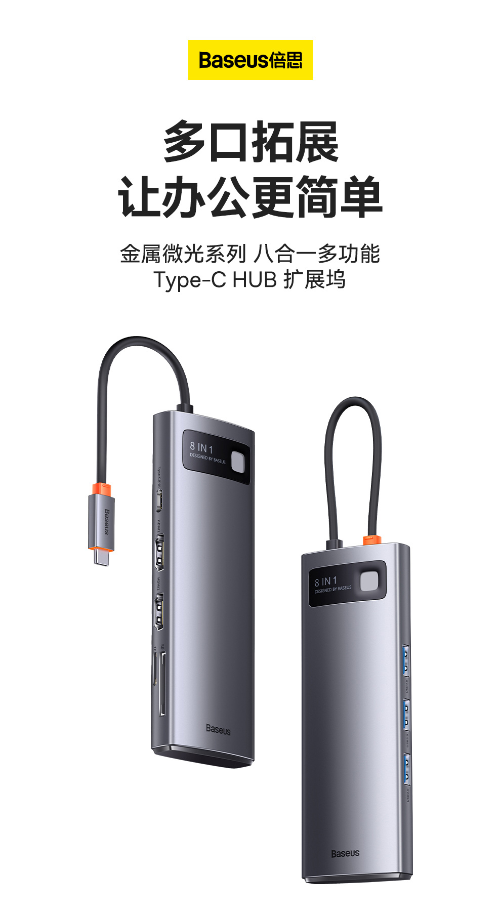 倍思 金属微光系列 八合一多功能Type-C HUB 扩展坞 深空灰