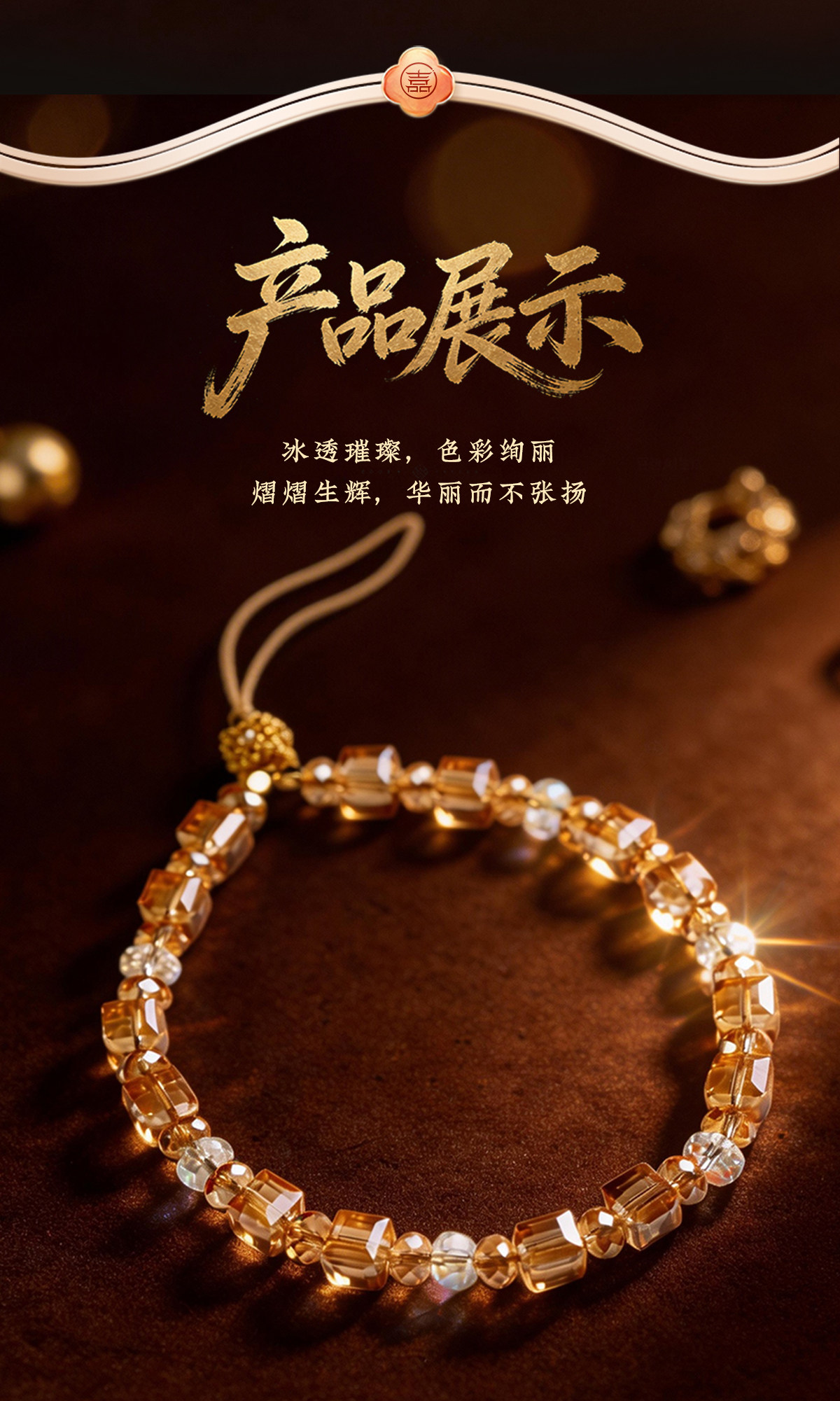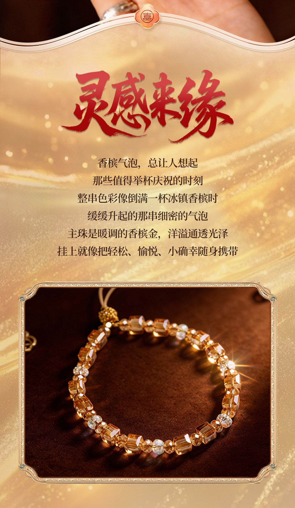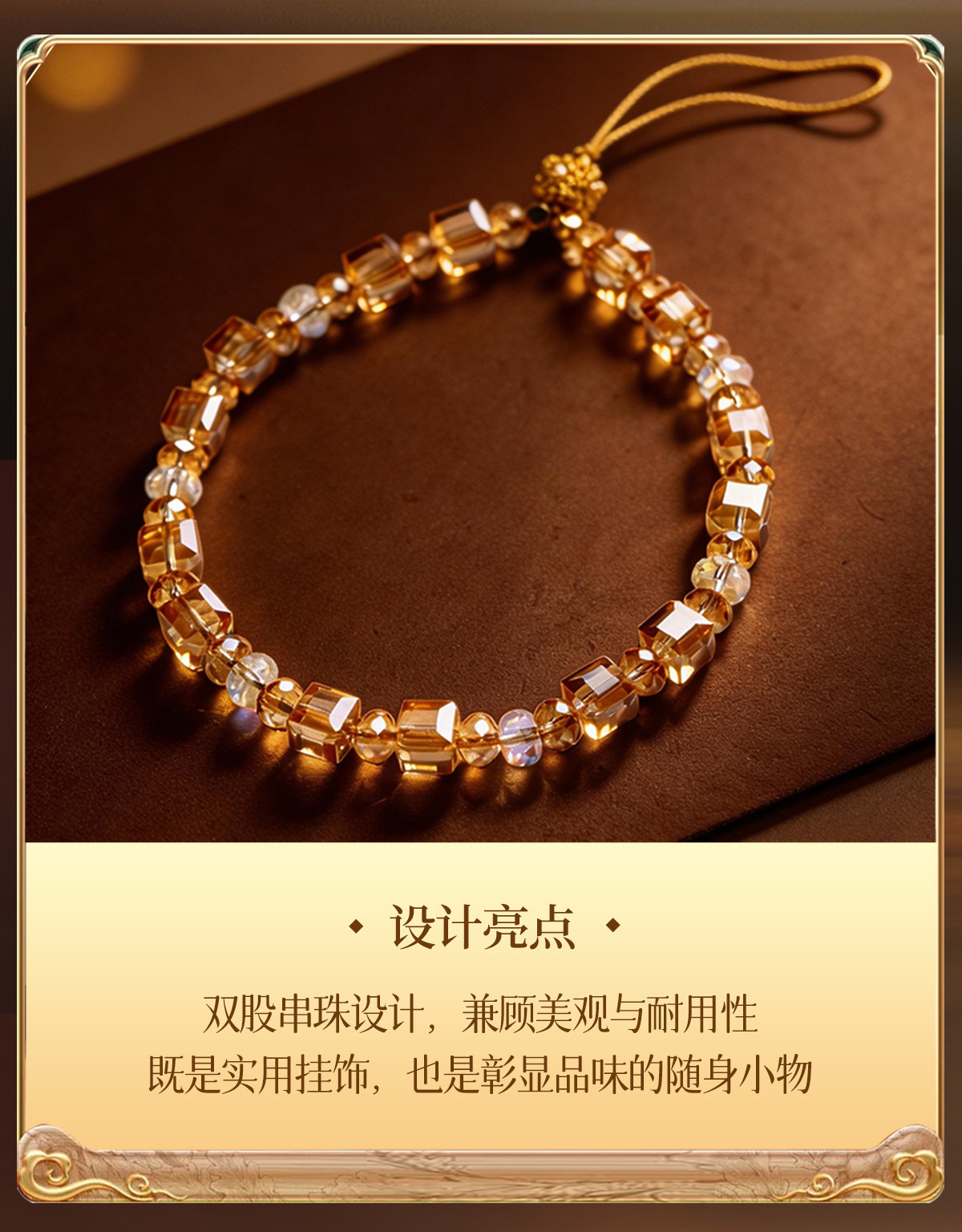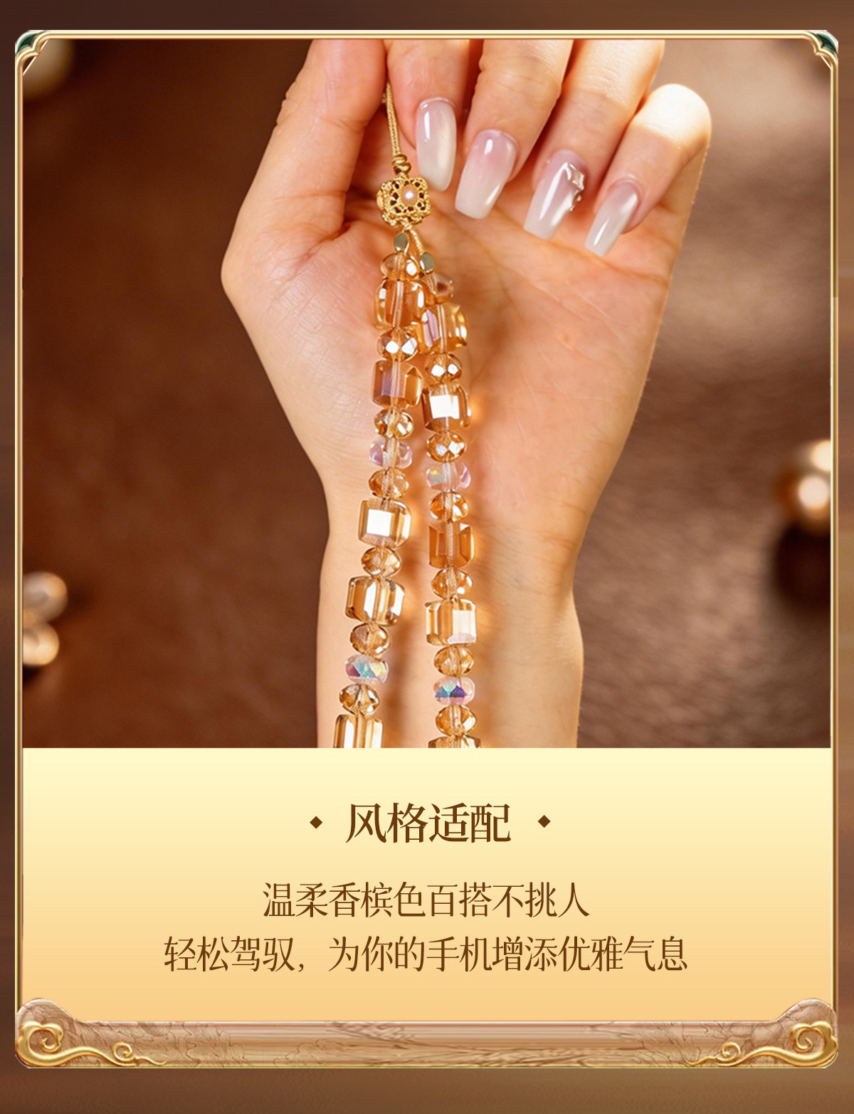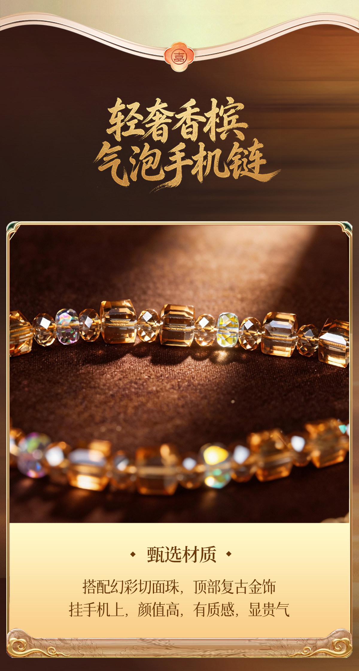 【祈愿吉品】「香槟气泡」挂绳手机链财神相机防丢挂饰安全绳鎏金色