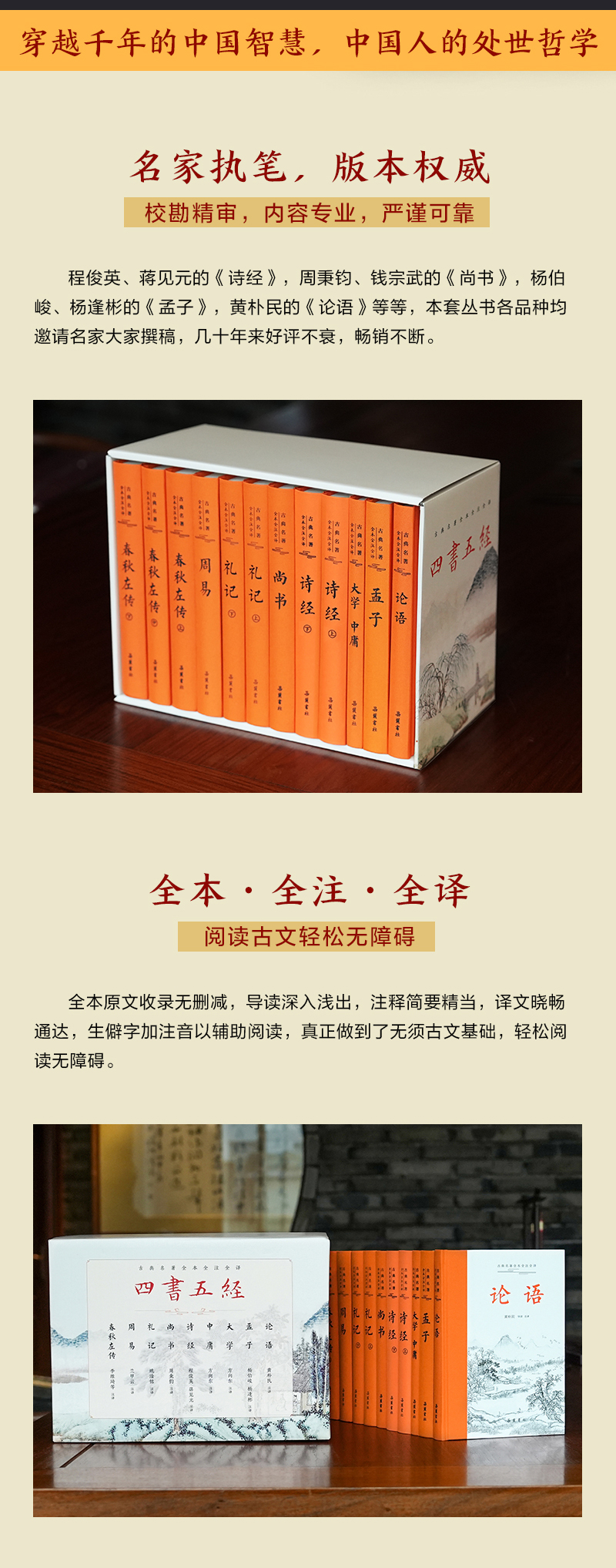 《四书五经》三全本布面精装(全12册)| 一套书读懂“中国人的处世哲学” 权威版本,全注全译,阅读零障碍