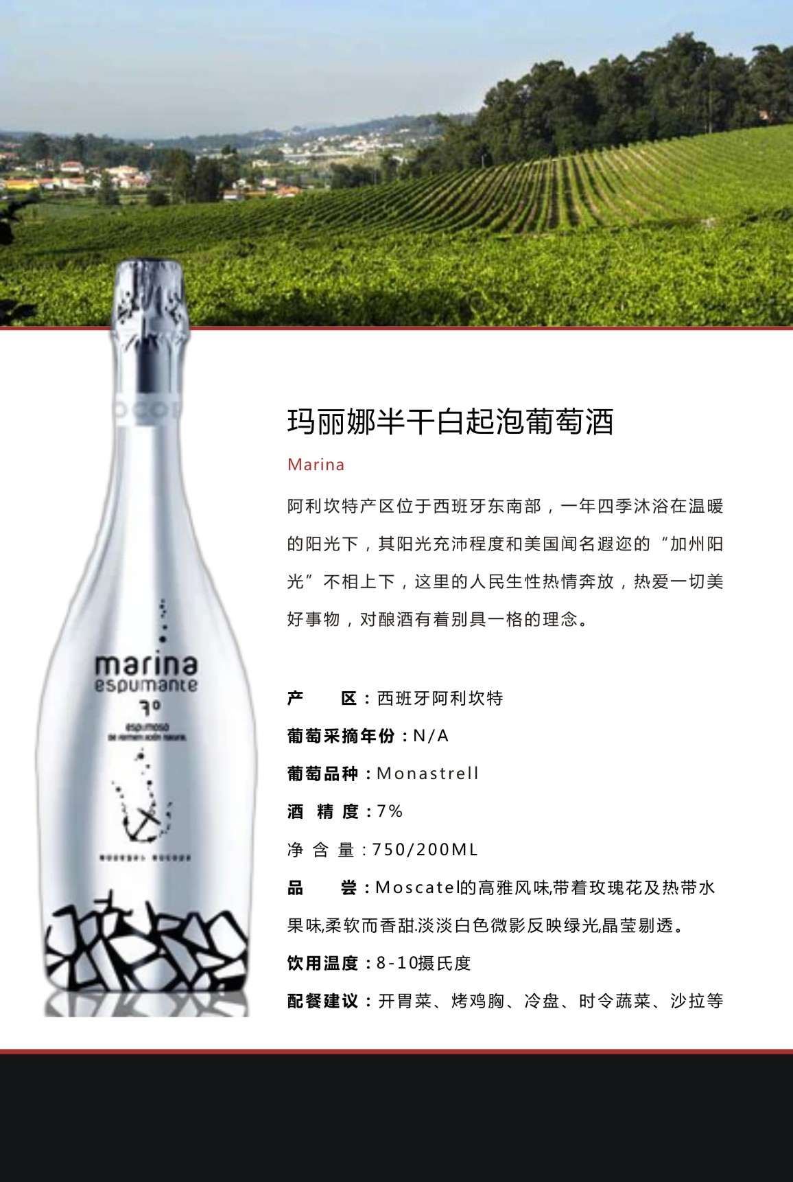 玛丽娜半干白起泡小瓶