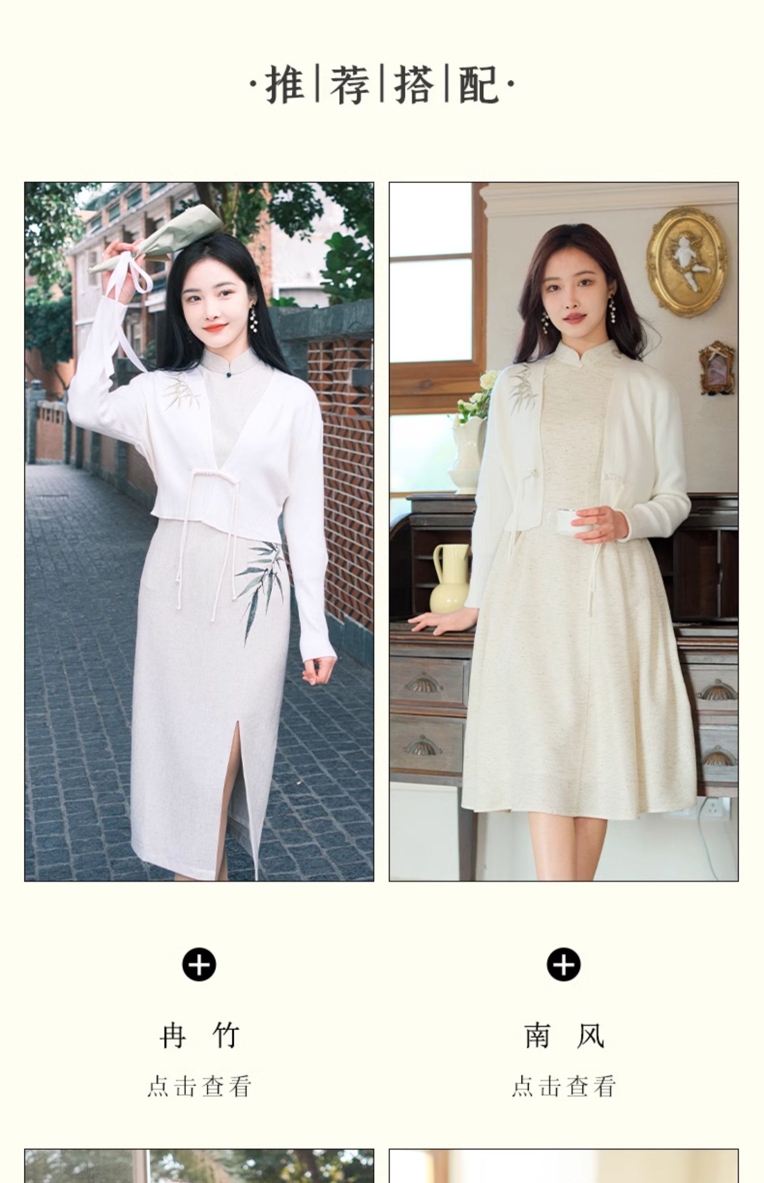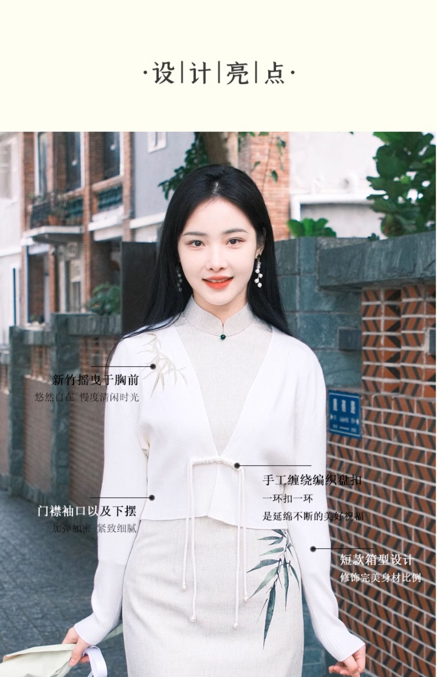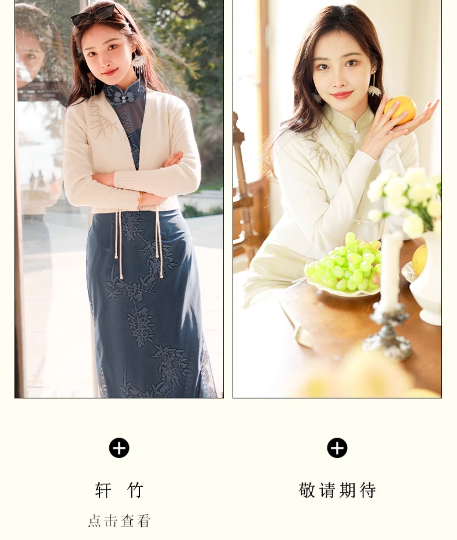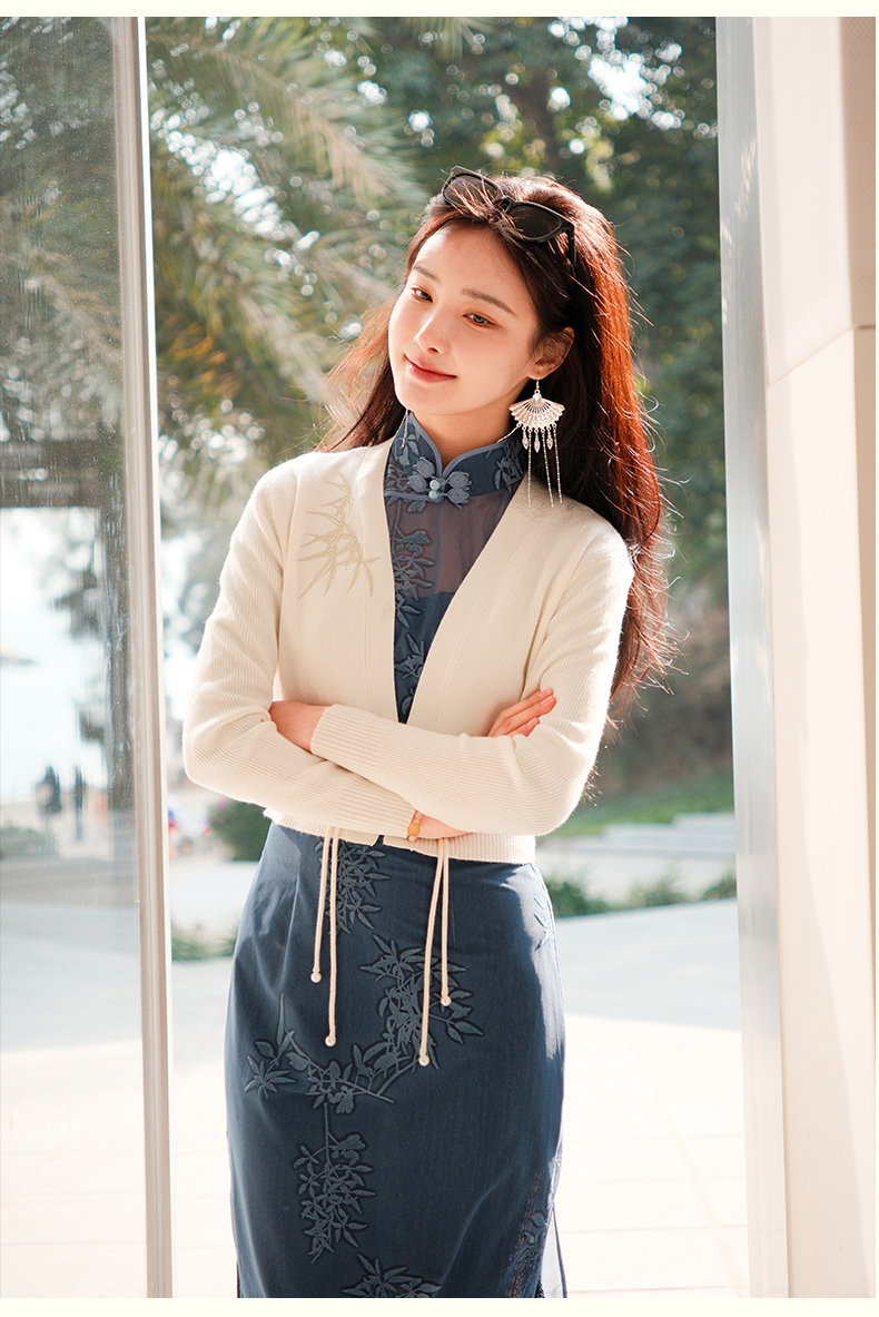 上海逸红颜书茵2025春秋新款丝光羊毛刺绣针织开衫柔滑旗袍高档外搭