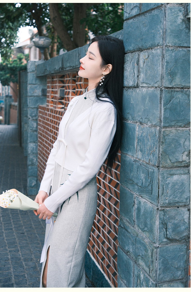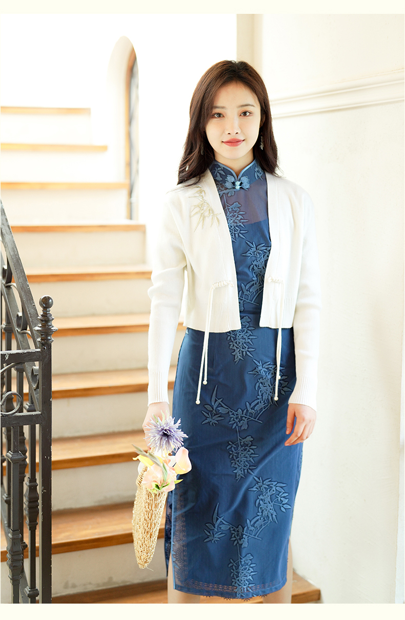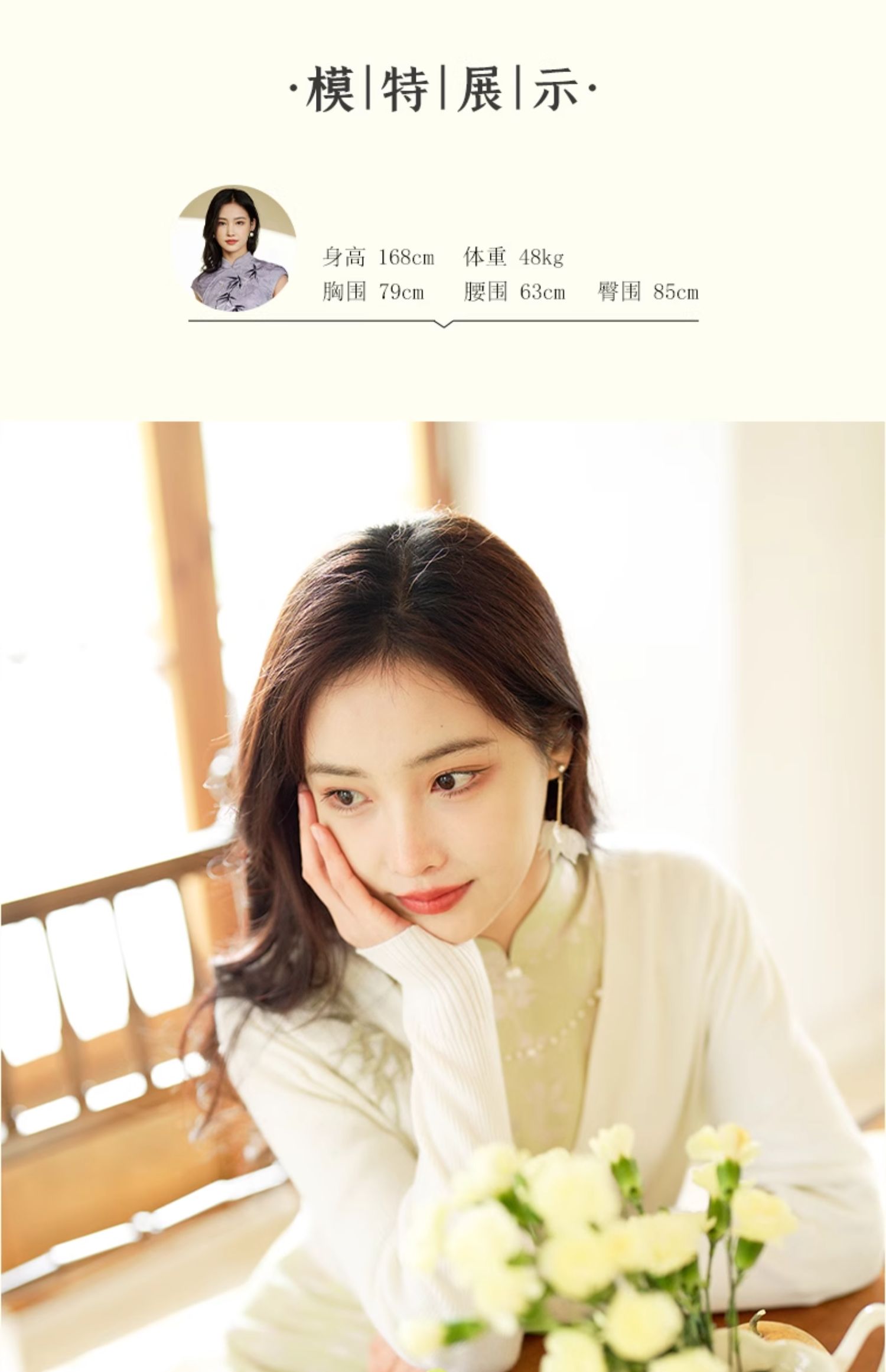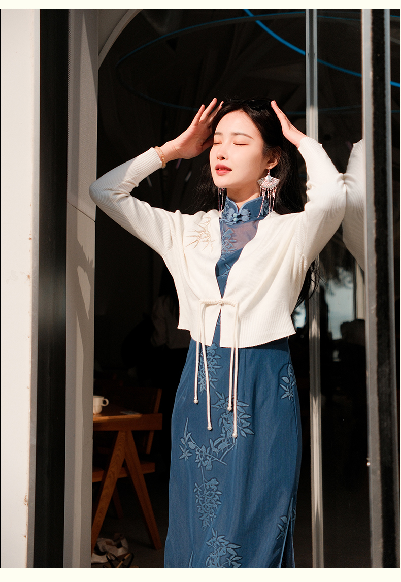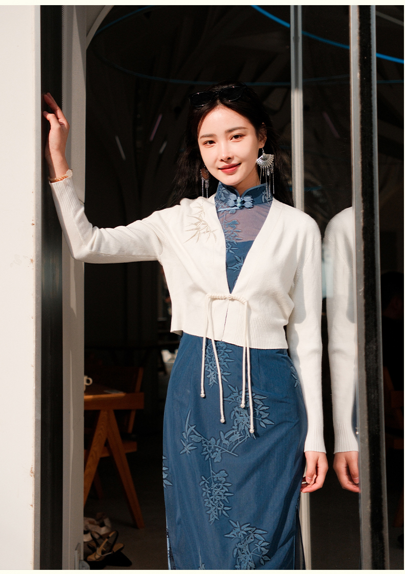 上海逸红颜书茵2025春秋新款丝光羊毛刺绣针织开衫柔滑旗袍高档外搭