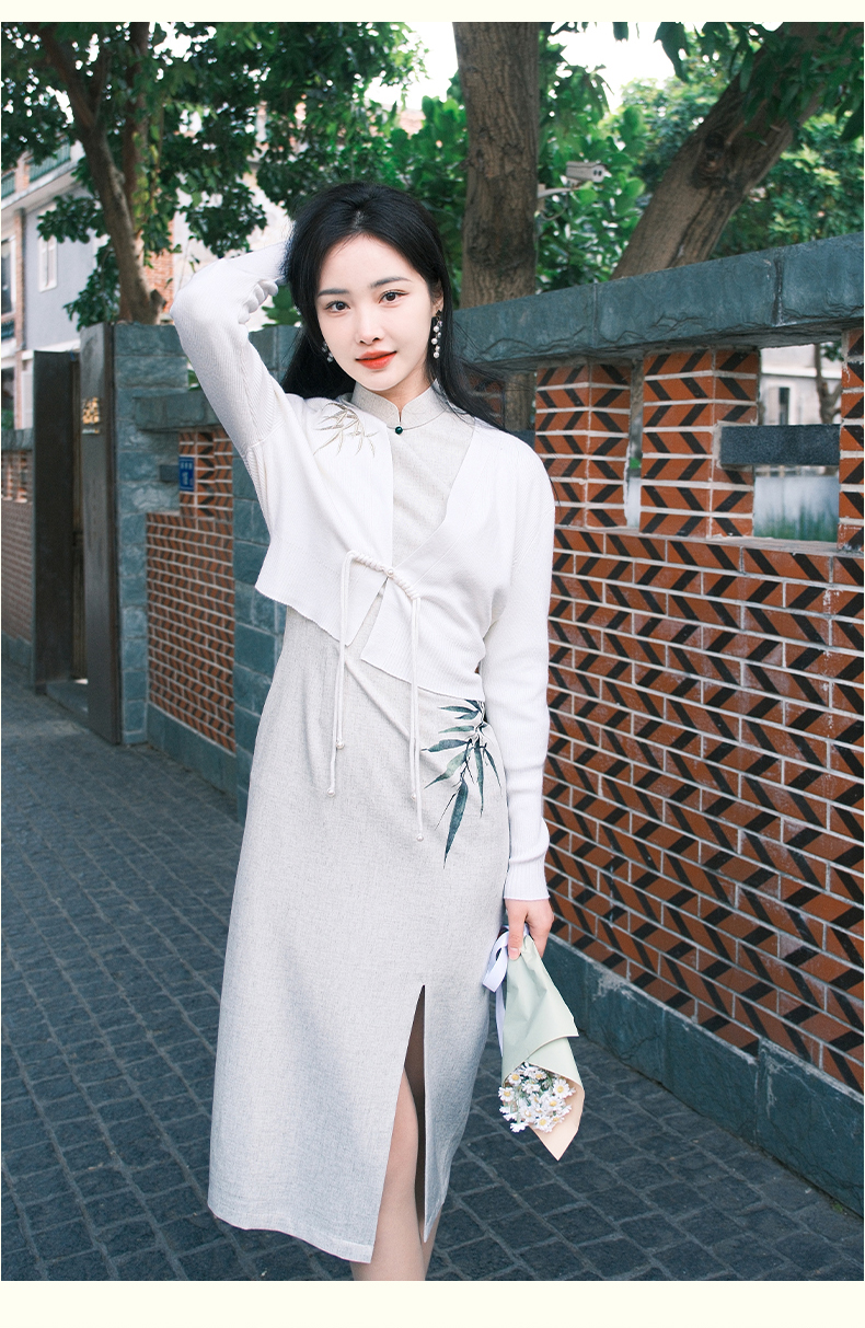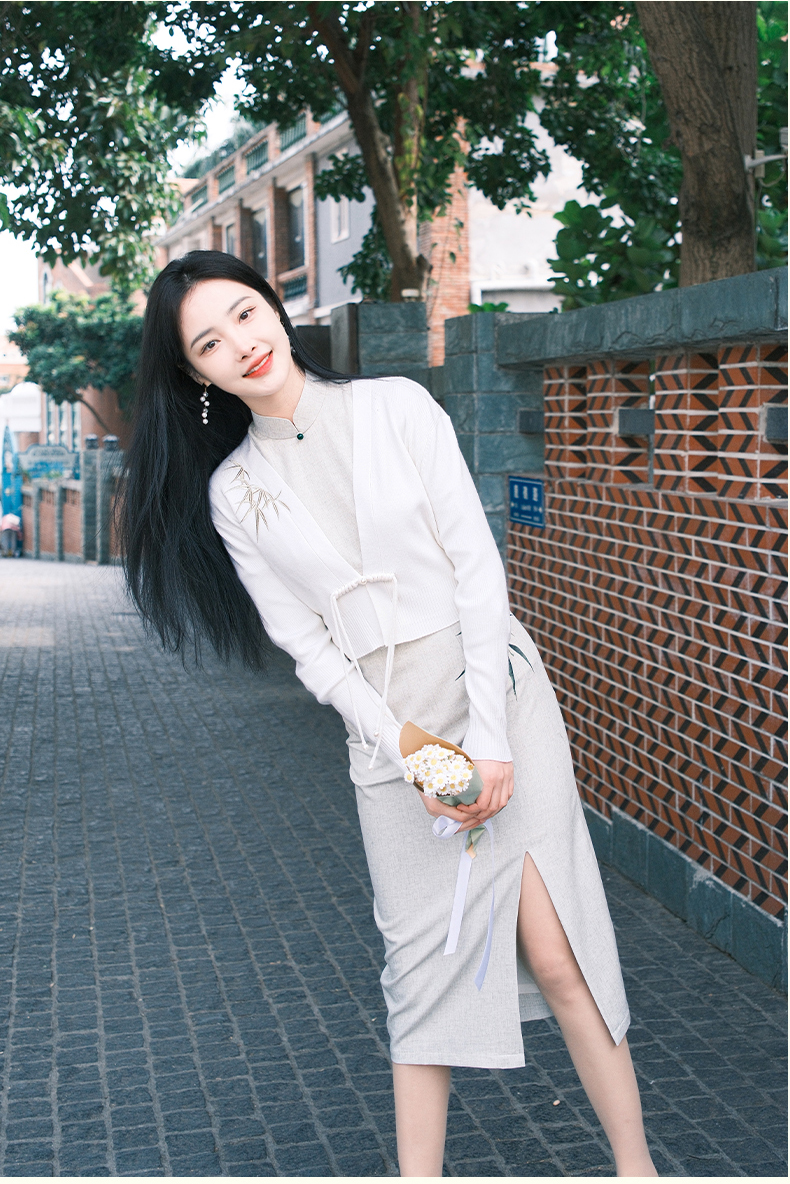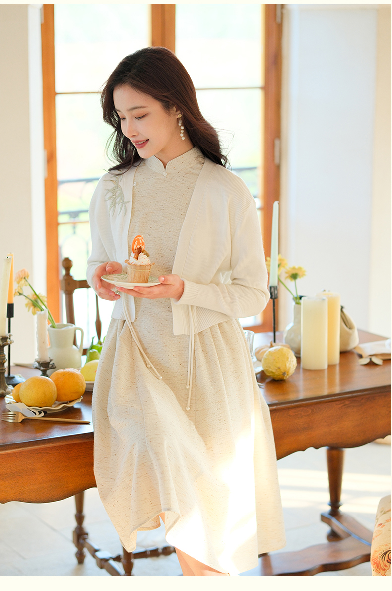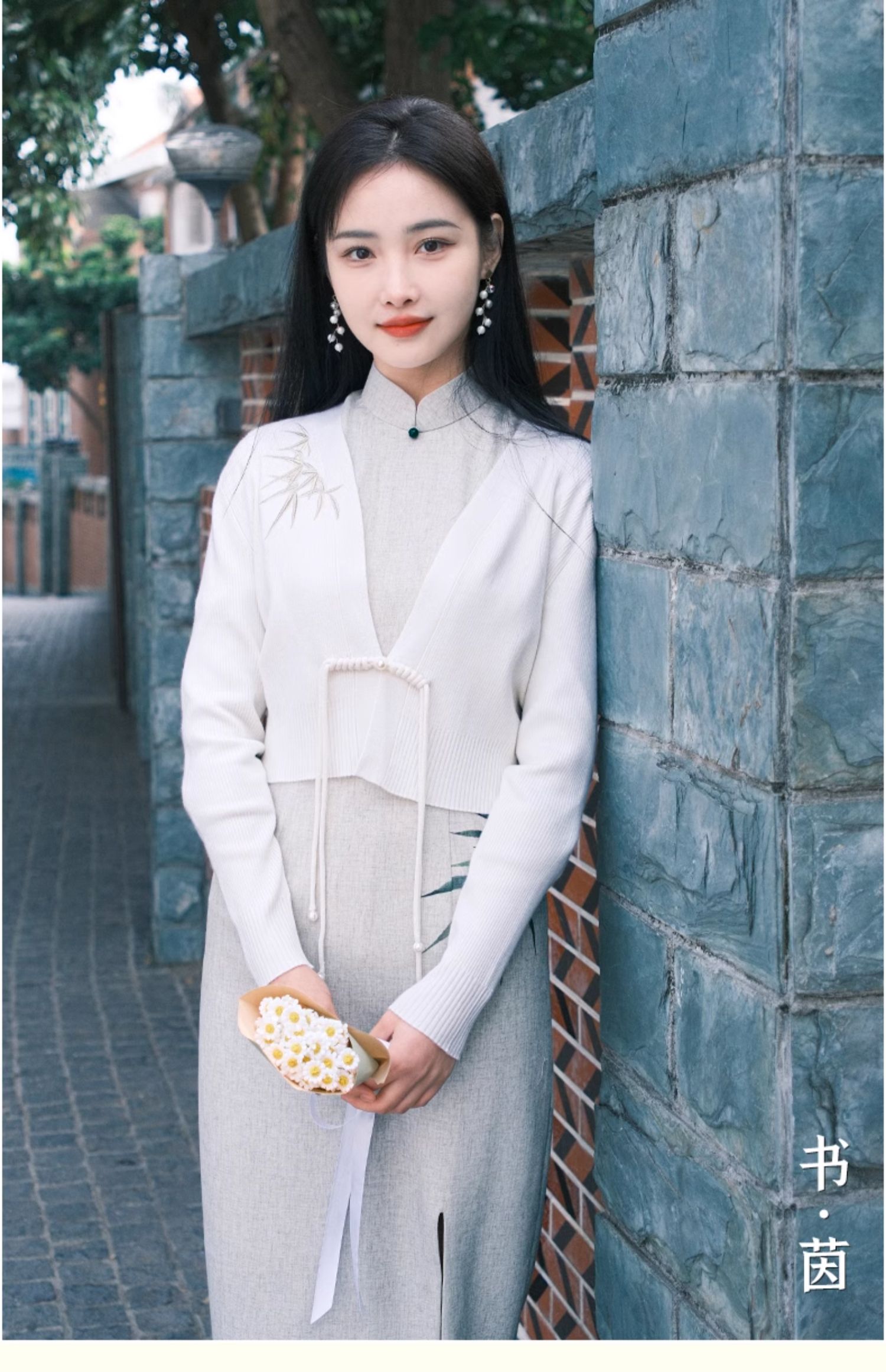上海逸红颜书茵2025春秋新款丝光羊毛刺绣针织开衫柔滑旗袍高档外搭