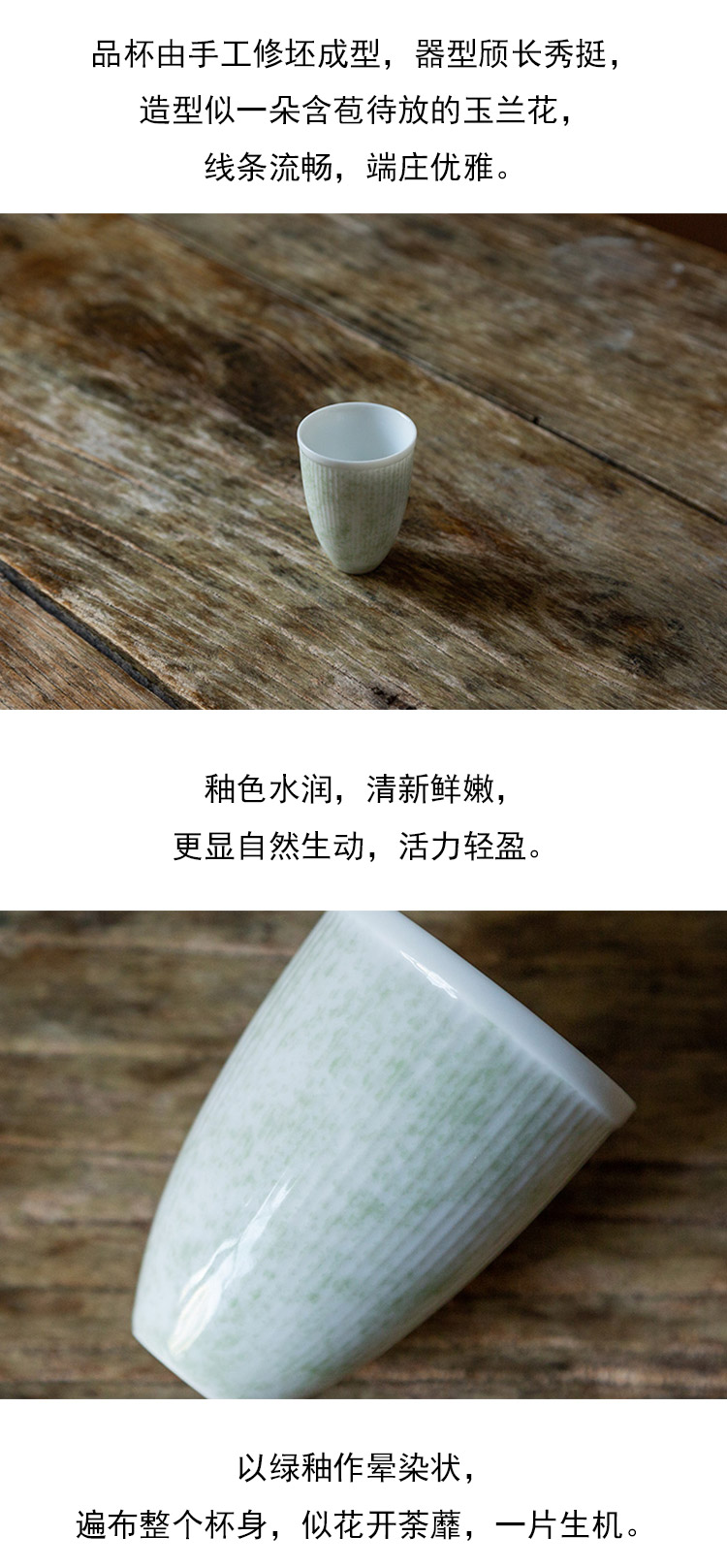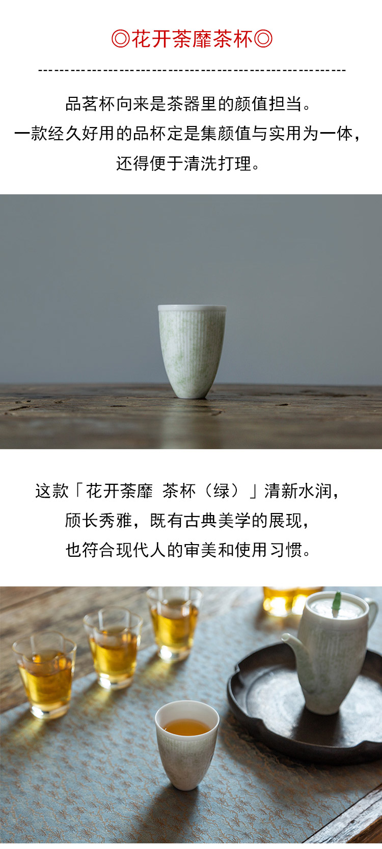 茶香记 花开荼靡茶杯(绿)品茗杯60ml手握杯清新水润陶瓷茶具