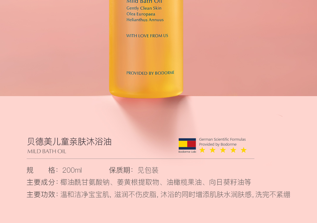 【品牌直发】贝德美bodorme儿童沐浴油沐浴乳200ml 肤抚触无泪配方