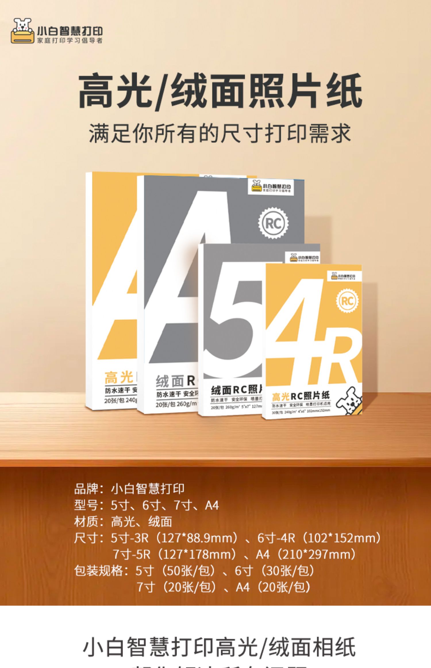 任选购-小白智慧打印 6寸RC打印照片纸