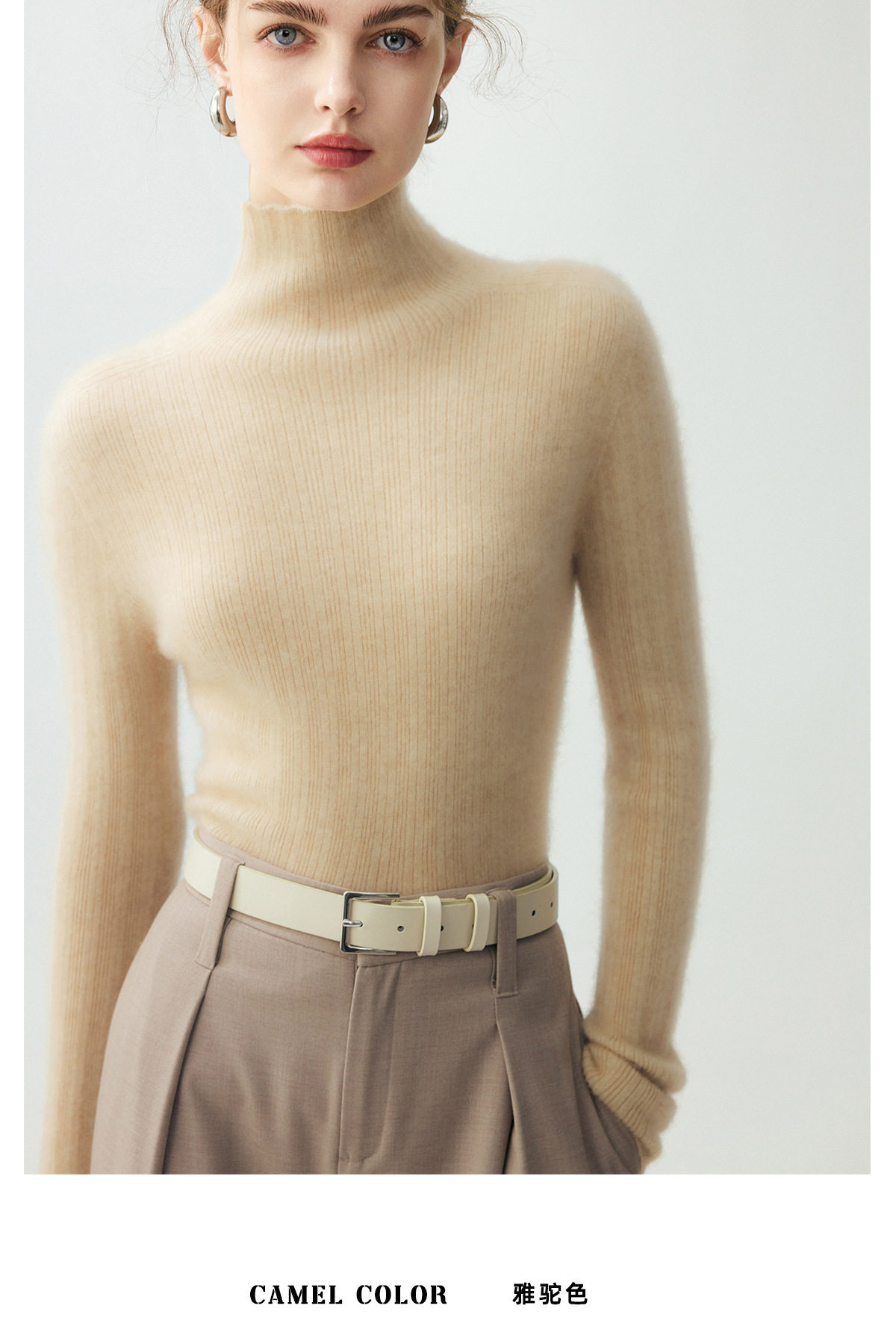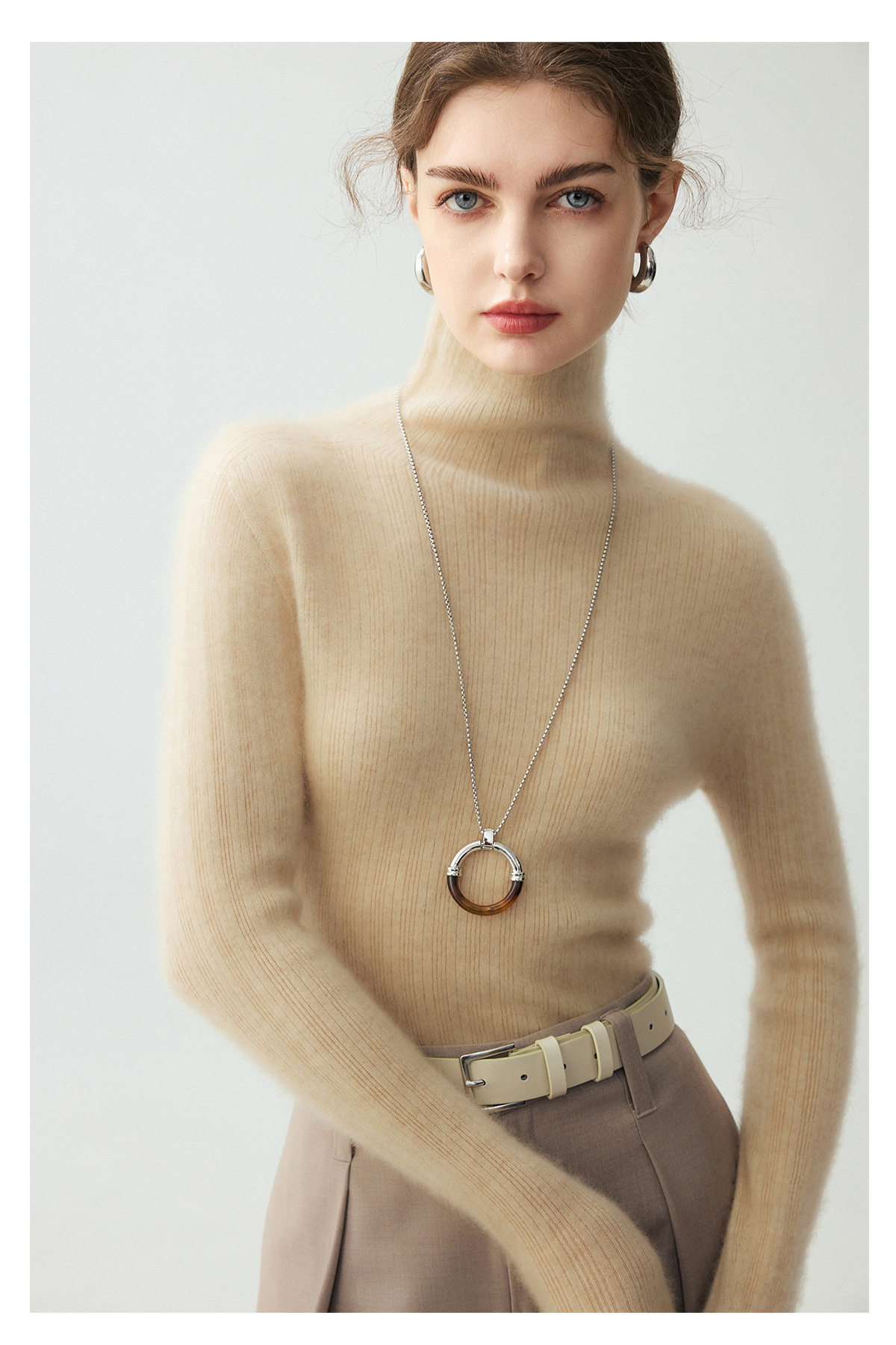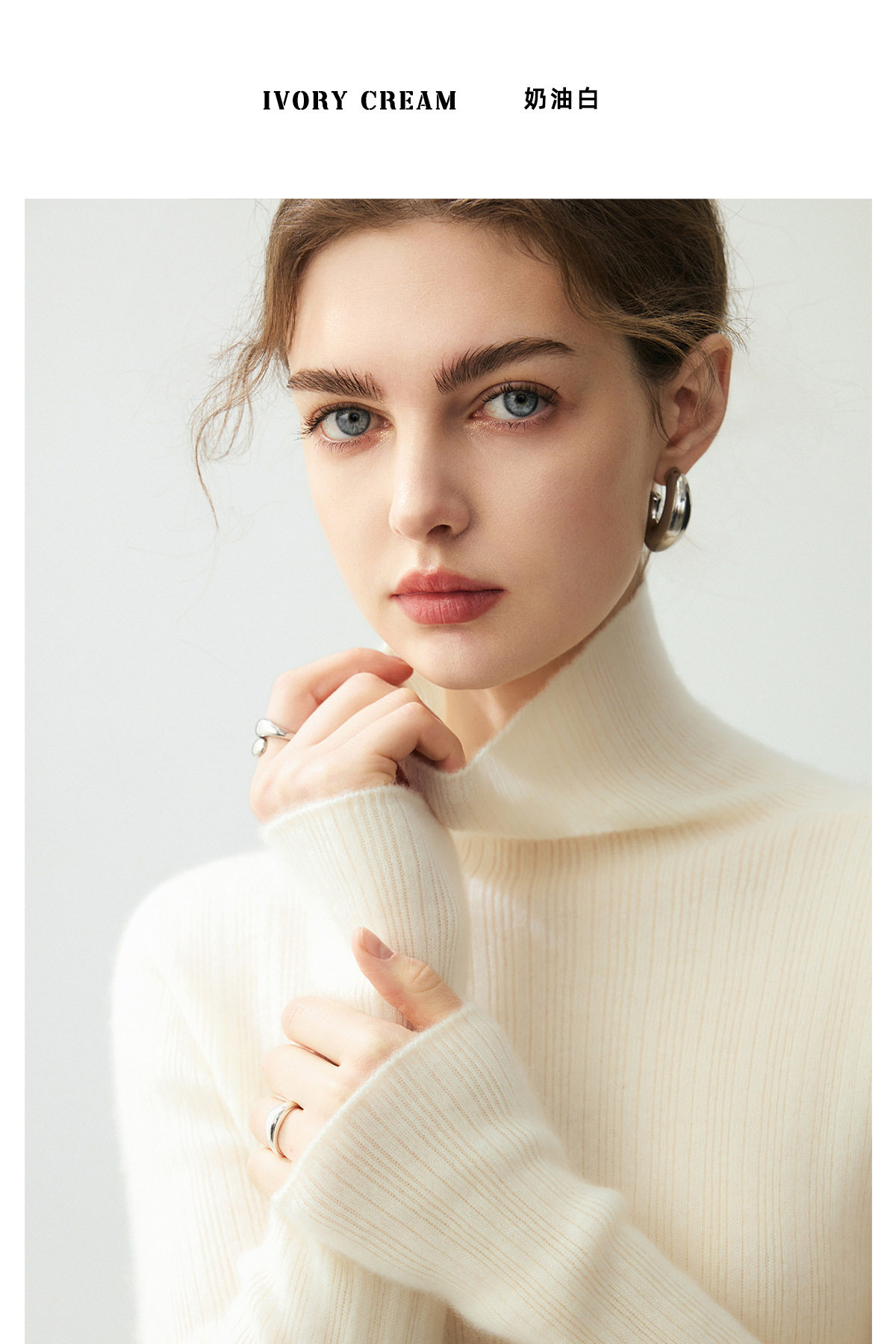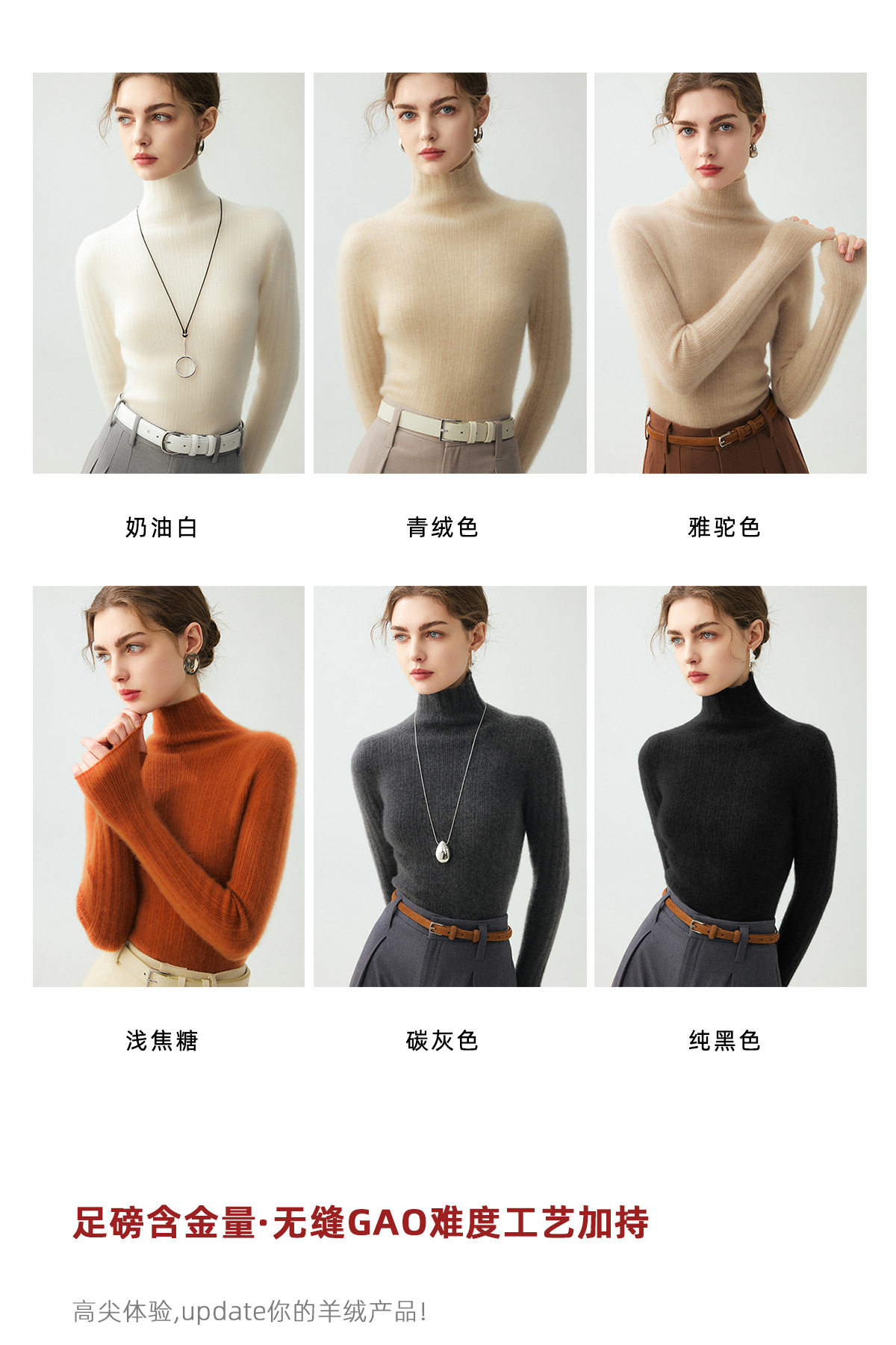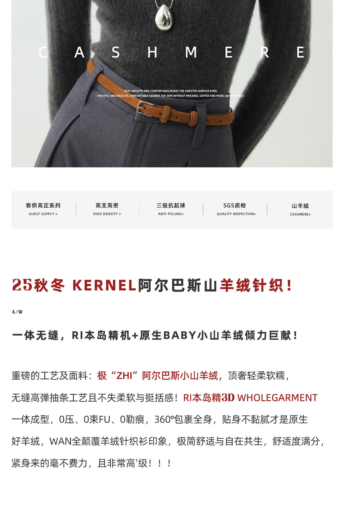 「高货rig」全新升级【铂金会员330/天猫449/差价119】(13215)洛诗琳一线成衣细抽条羊绒衫2025秋冬修身高领针织毛衣女