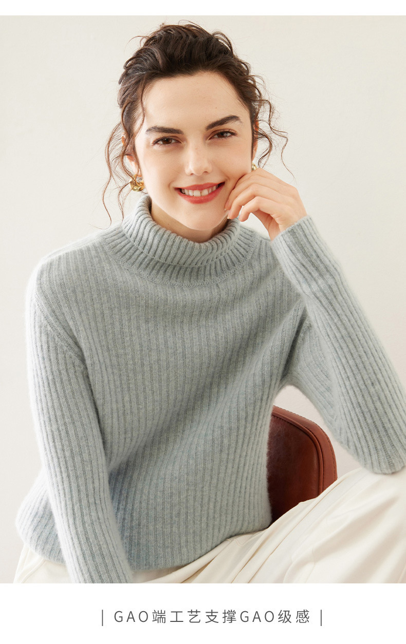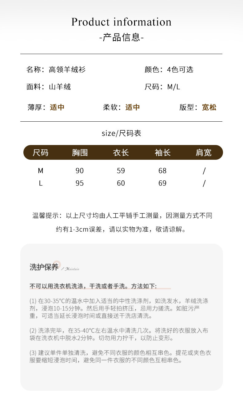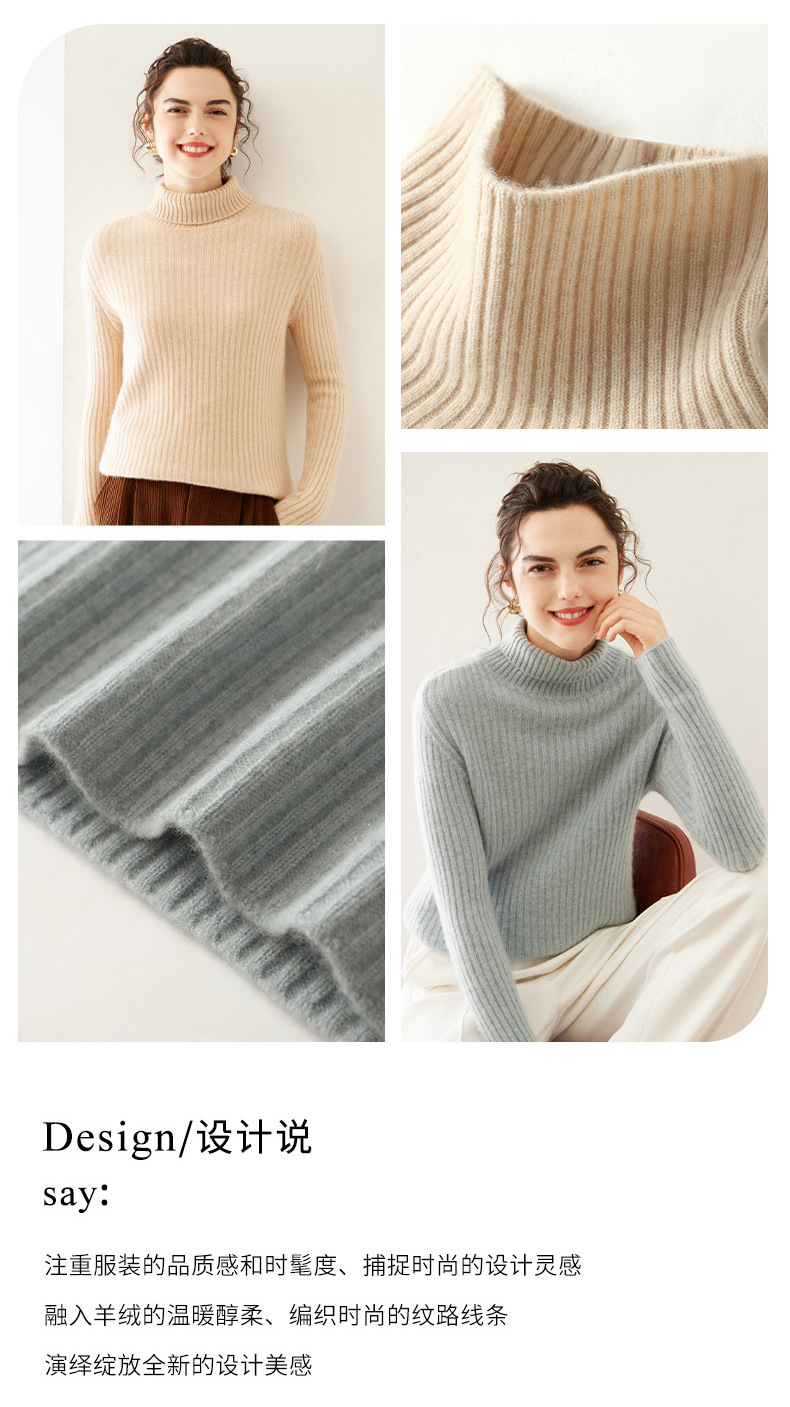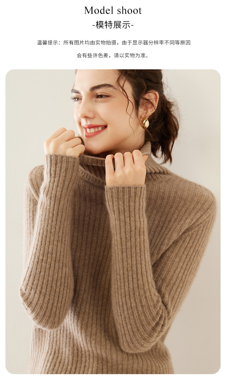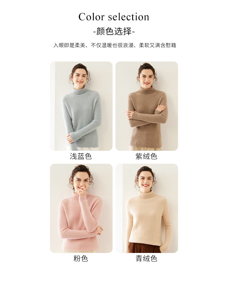 【自】全新升级【铂金会员441/天猫599/差价158】(12646) 洛诗琳秋冬新款纯色高领套头羊绒羊毛混纺修身打底针织毛衫