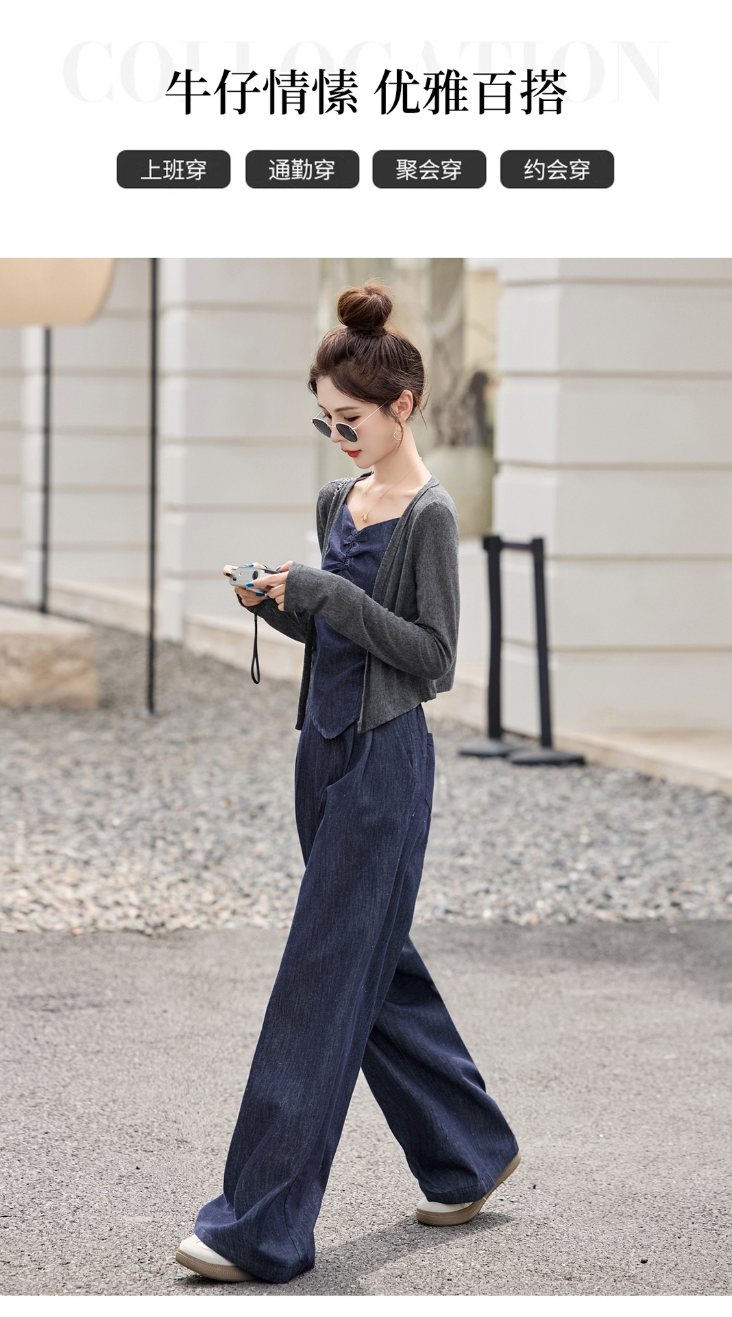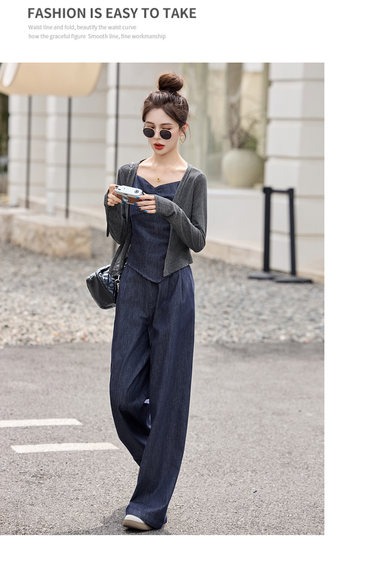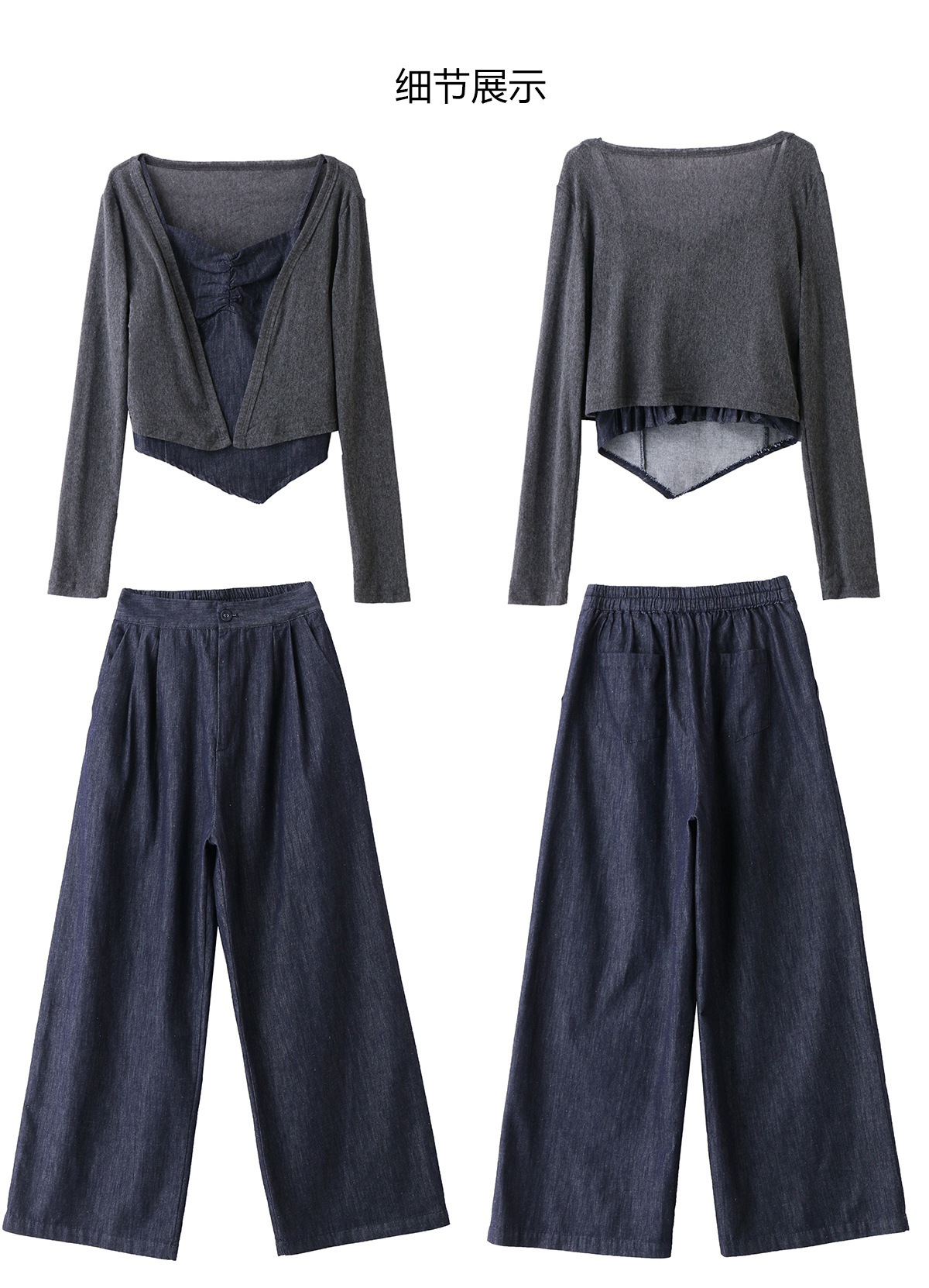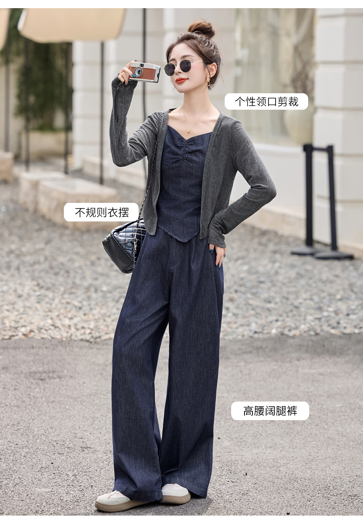 【预售3天】2025秋新款韩版牛仔显瘦百搭背心配阔腿裤休闲三件套套装YDYX9368