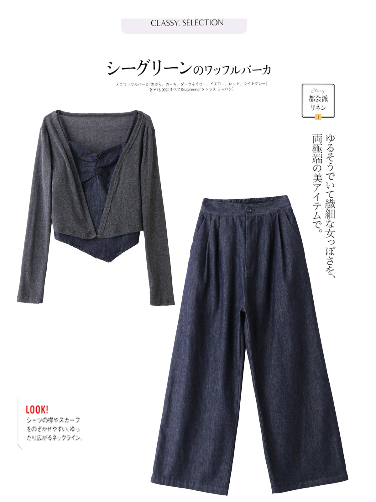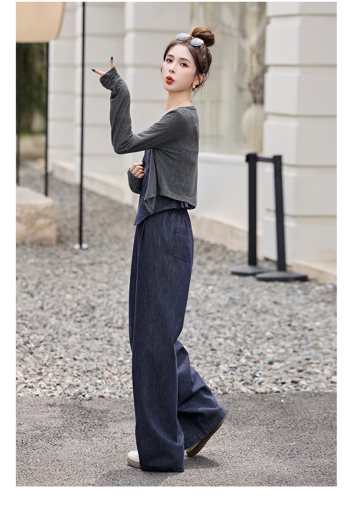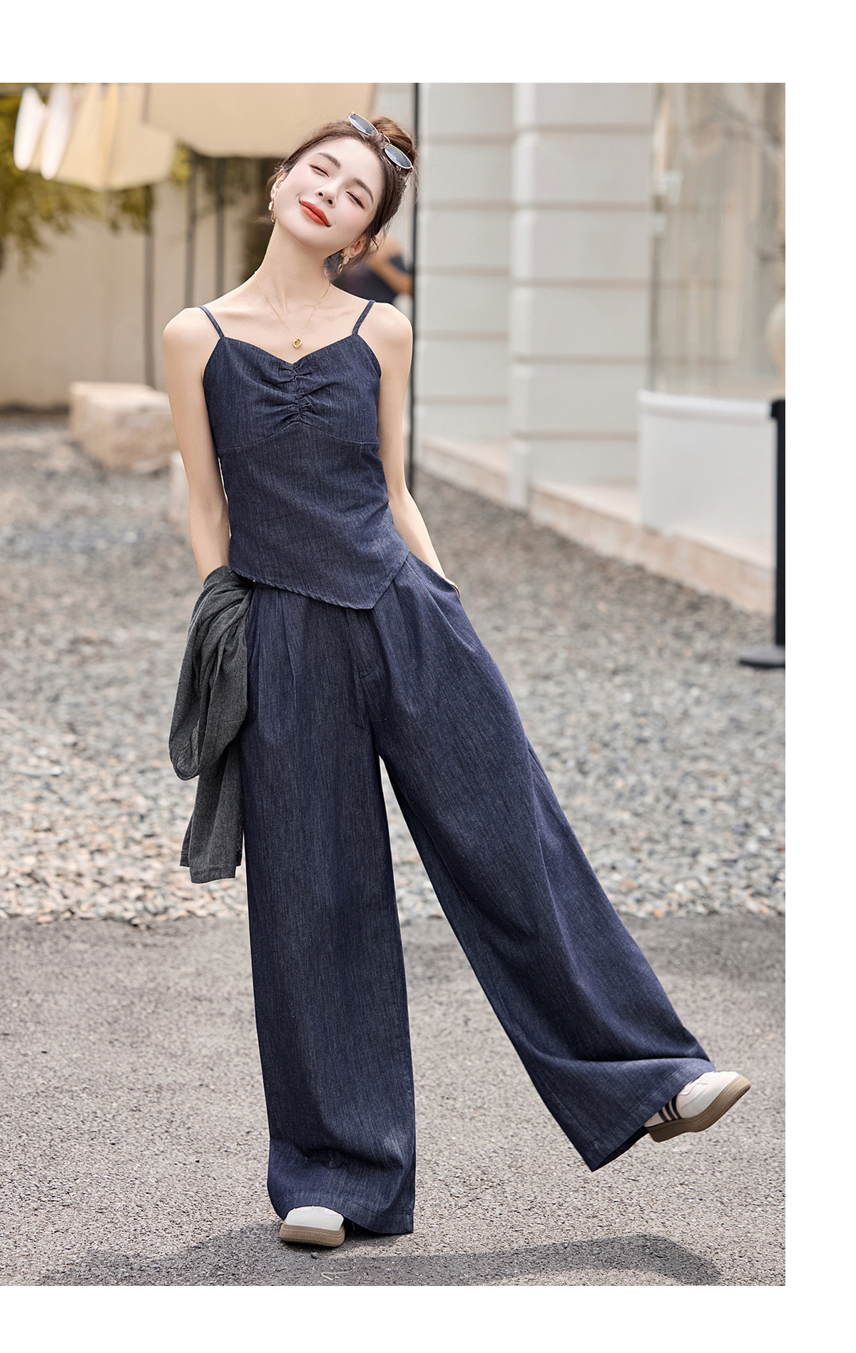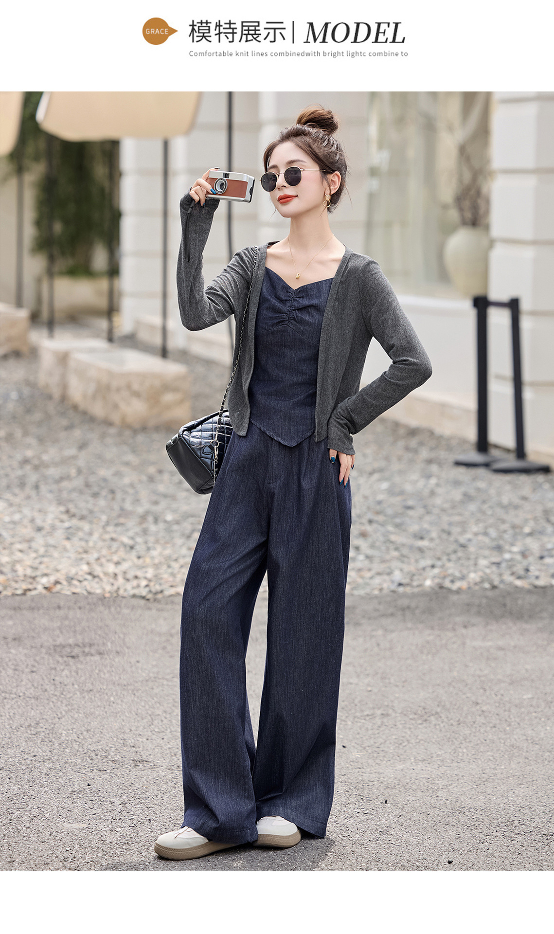 【预售3天】2025秋新款韩版牛仔显瘦百搭背心配阔腿裤休闲三件套套装YDYX9368
