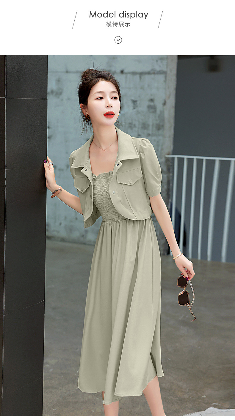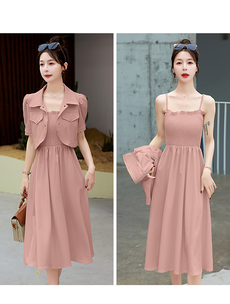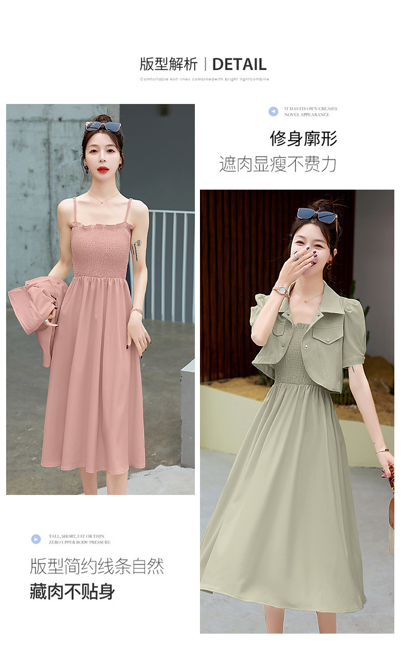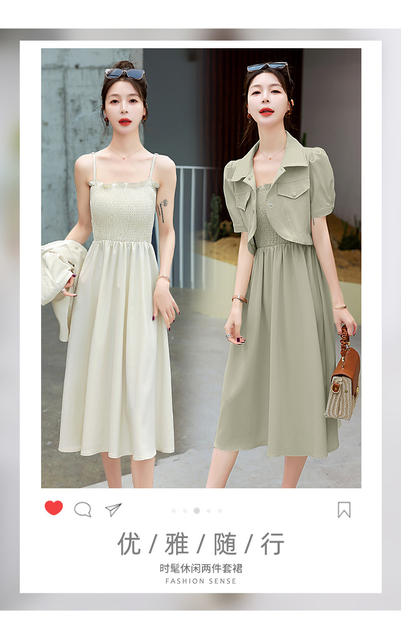休闲百搭时尚潮流,外套吊带裙两件套套裙HR-HMQY5313
