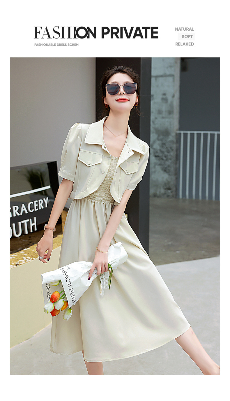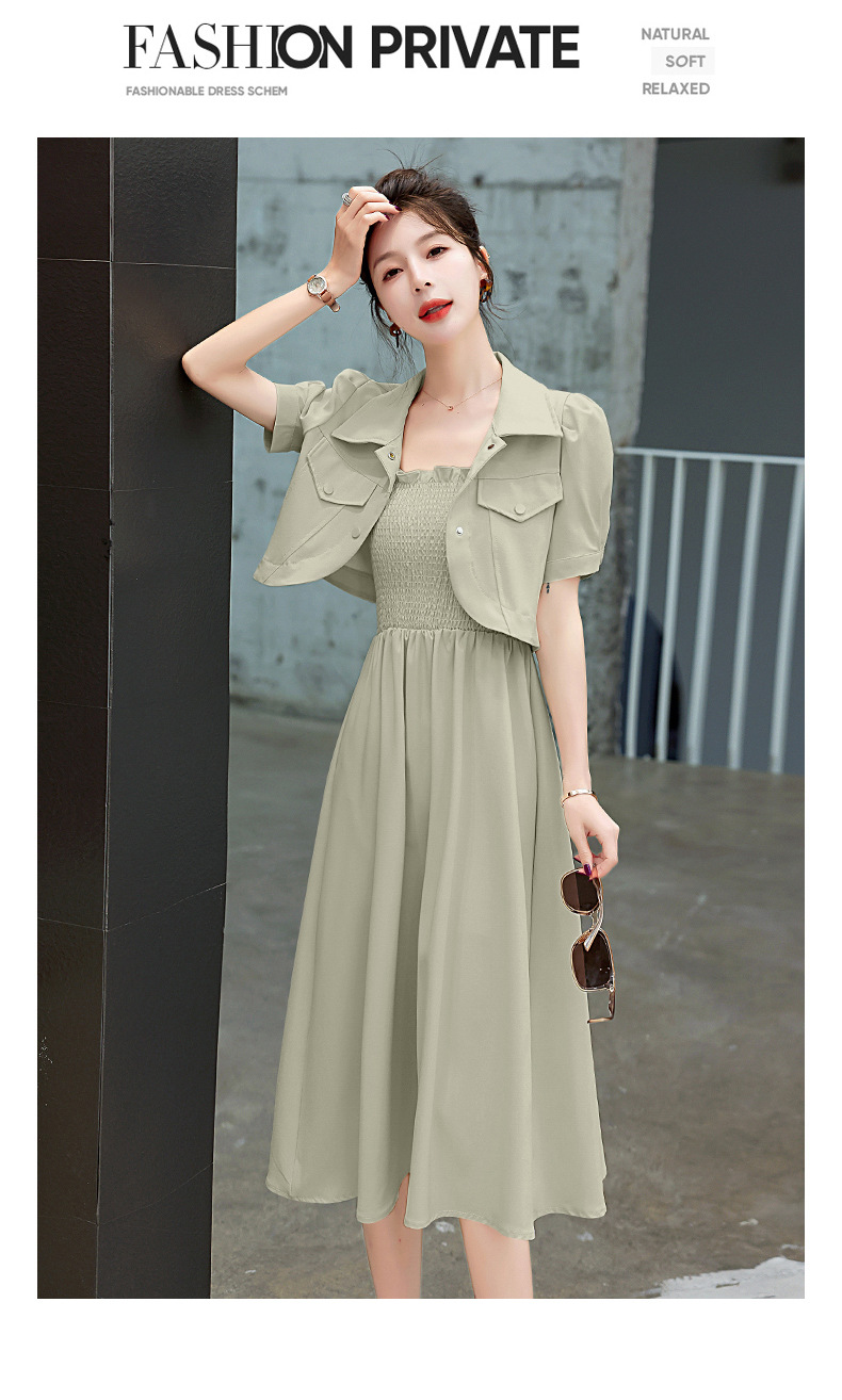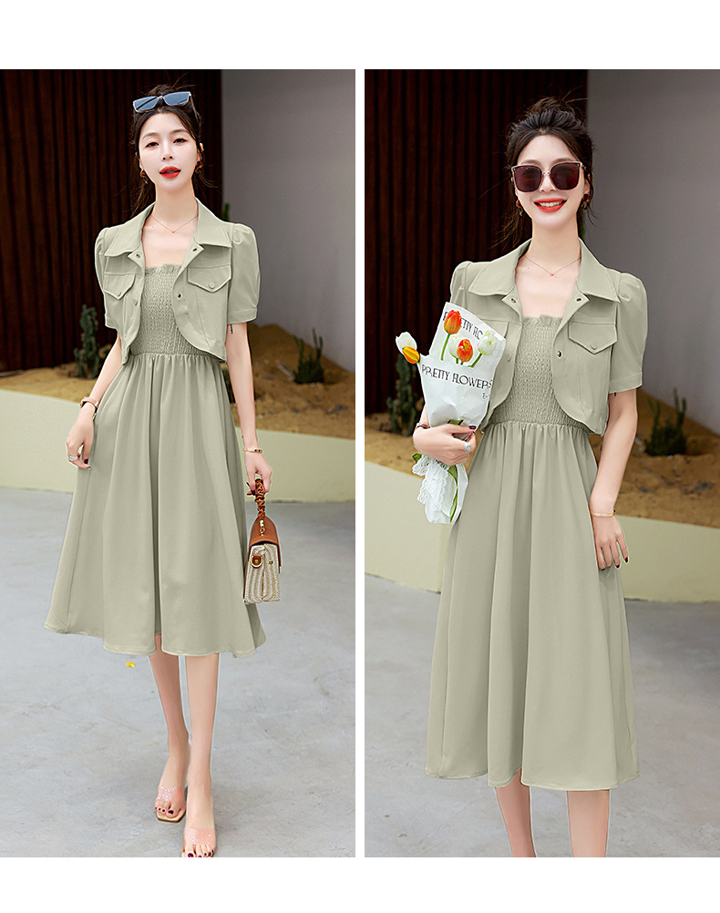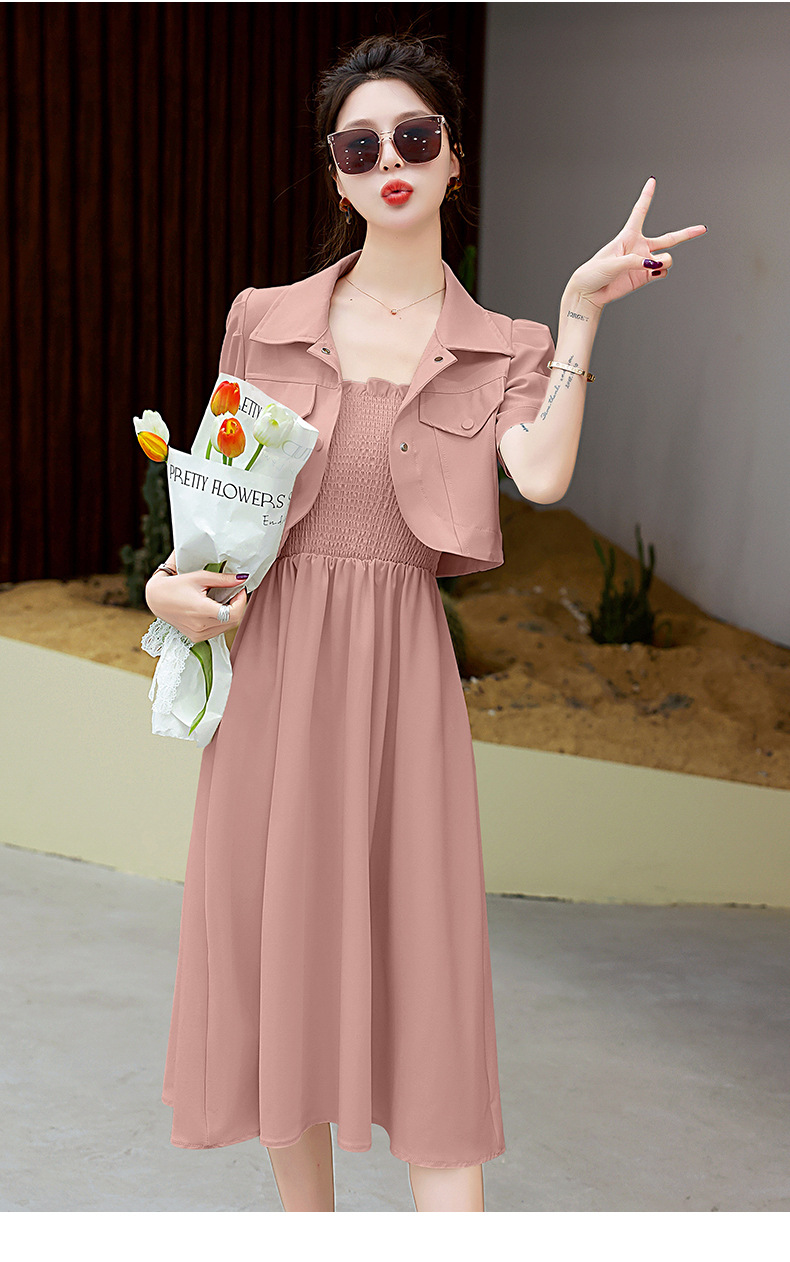 休闲百搭时尚潮流,外套吊带裙两件套套裙HR-HMQY5313
