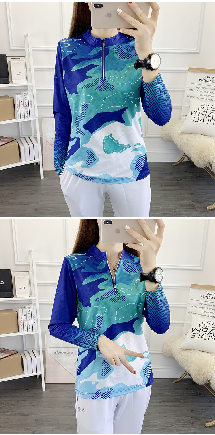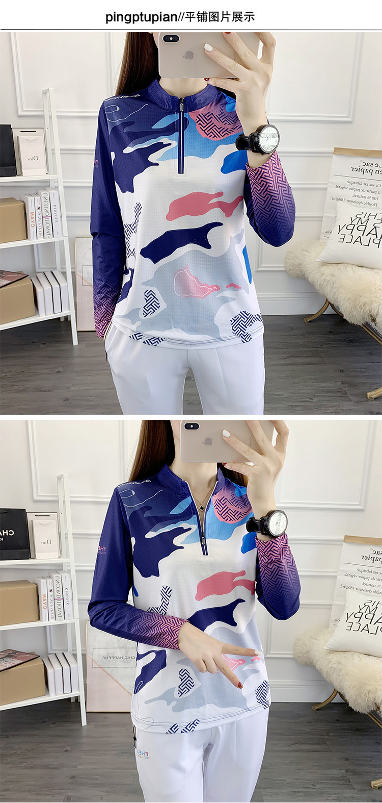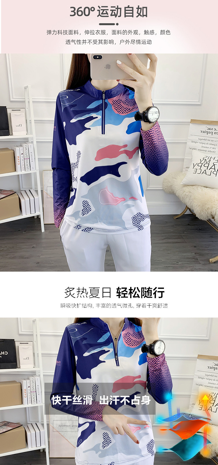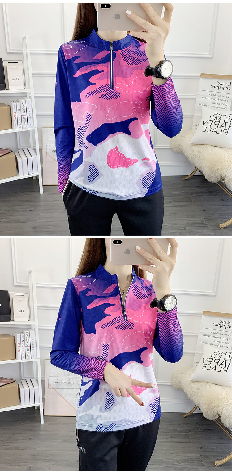 丁摩 时尚户外印花上衣瑜伽速干衣长袖T恤女健身衣跑步迷彩5ZF-2361