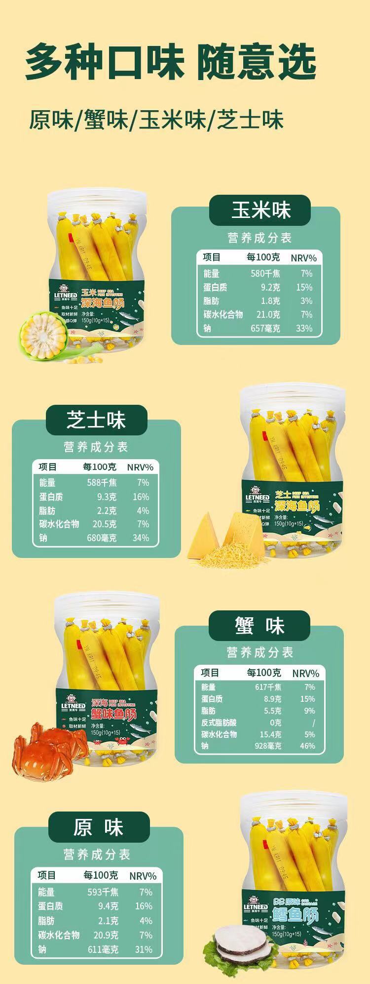 莱莱牛宝宝鱼肠 3罐 150g/罐 (口味随机)