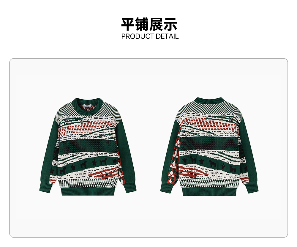 【秒2】【MQD】男童冬季时尚复古图案圆领针织衫毛衣