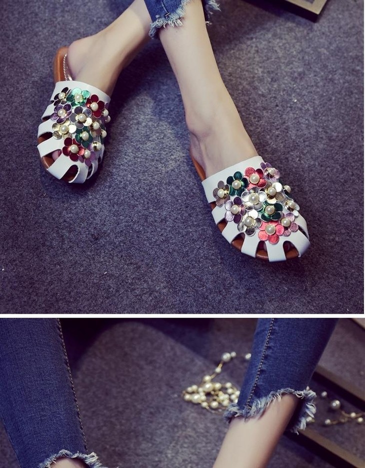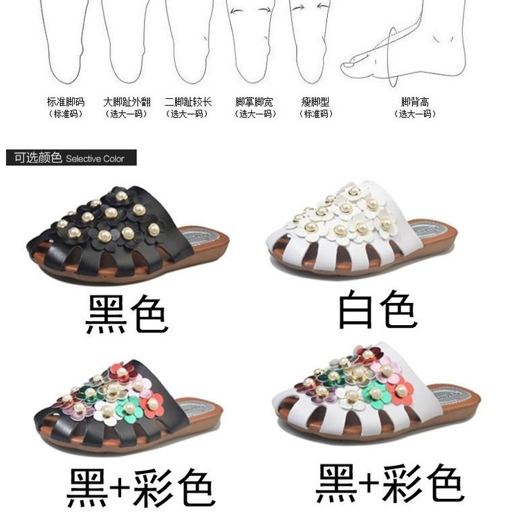 YQ-2143 夏季珍珠镂空包头平底凉拖时尚气质罗马凉拖鞋外穿平底