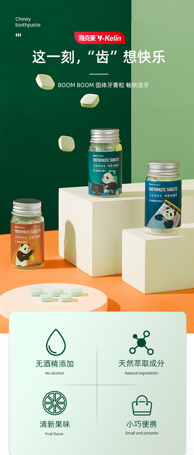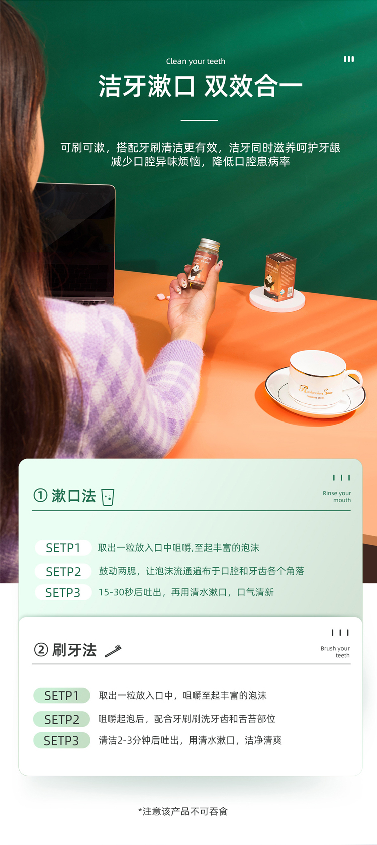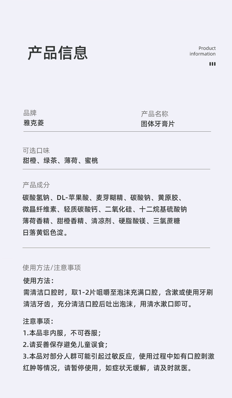 【洁牙漱口双效合一】雅克菱固体颗粒漱口水牙膏粒洁牙片去黄牙垢旅行便携正畸适用牙膏