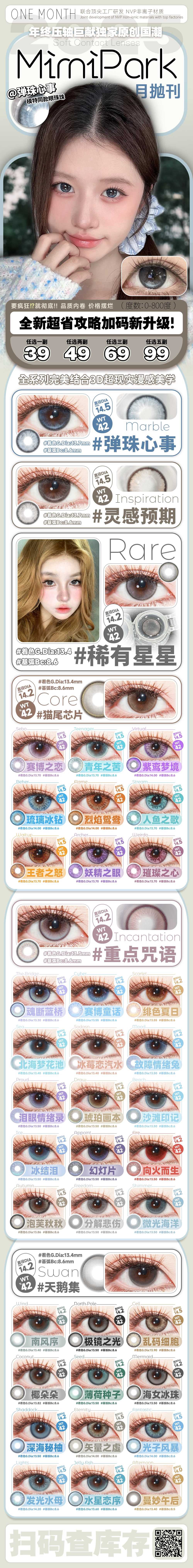 【本月活动】MIMIPARK美瞳月抛,3副69,5副99