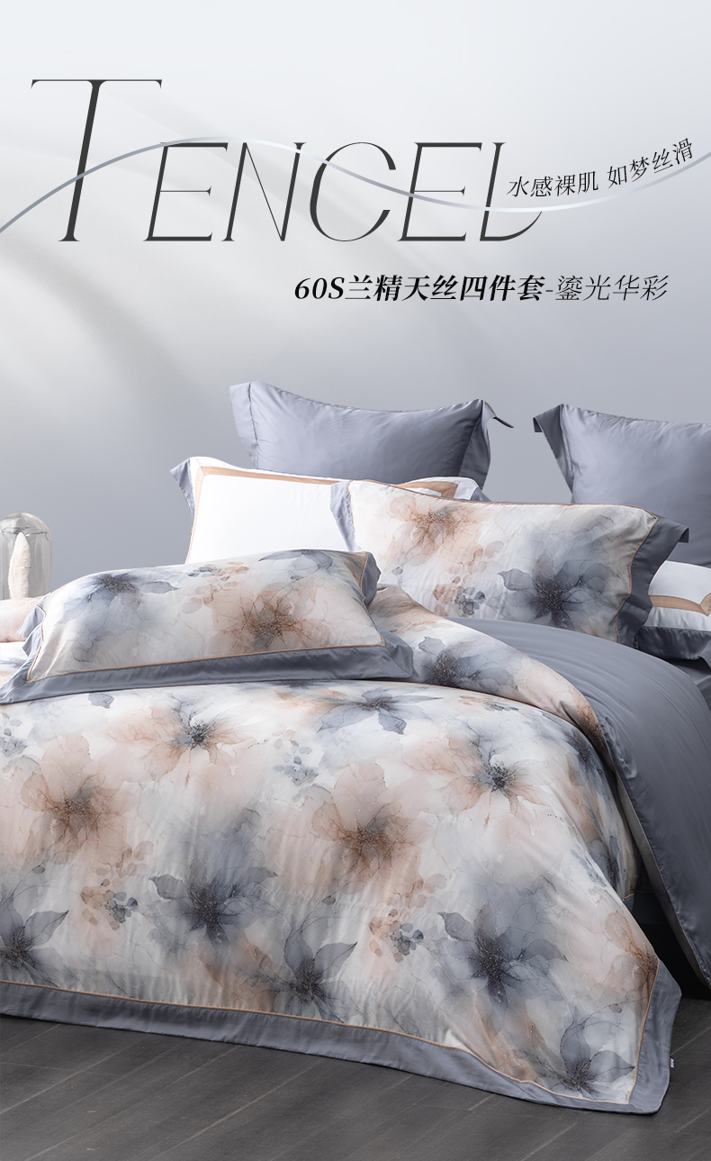 多喜爱 60S兰精天丝四件套-鎏光华彩【礼盒包装】 如梦丝滑 莹润如真丝 奥地利进口兰精天丝 拼边设计 专利床单