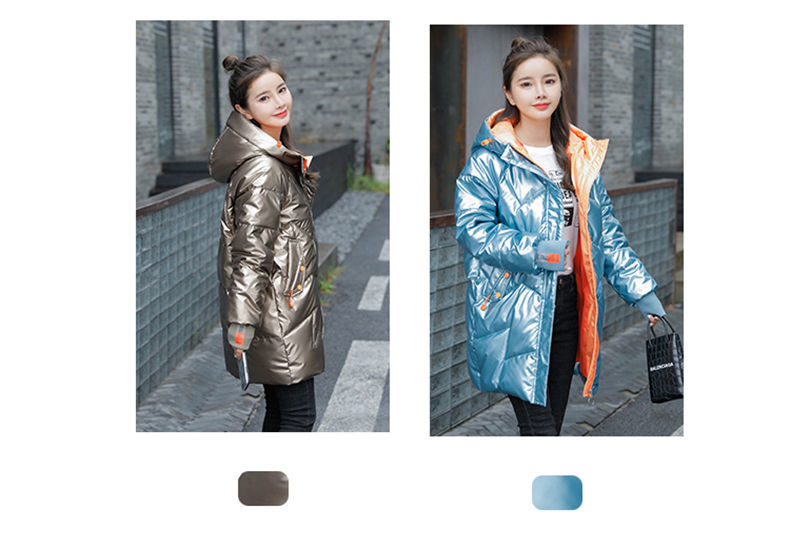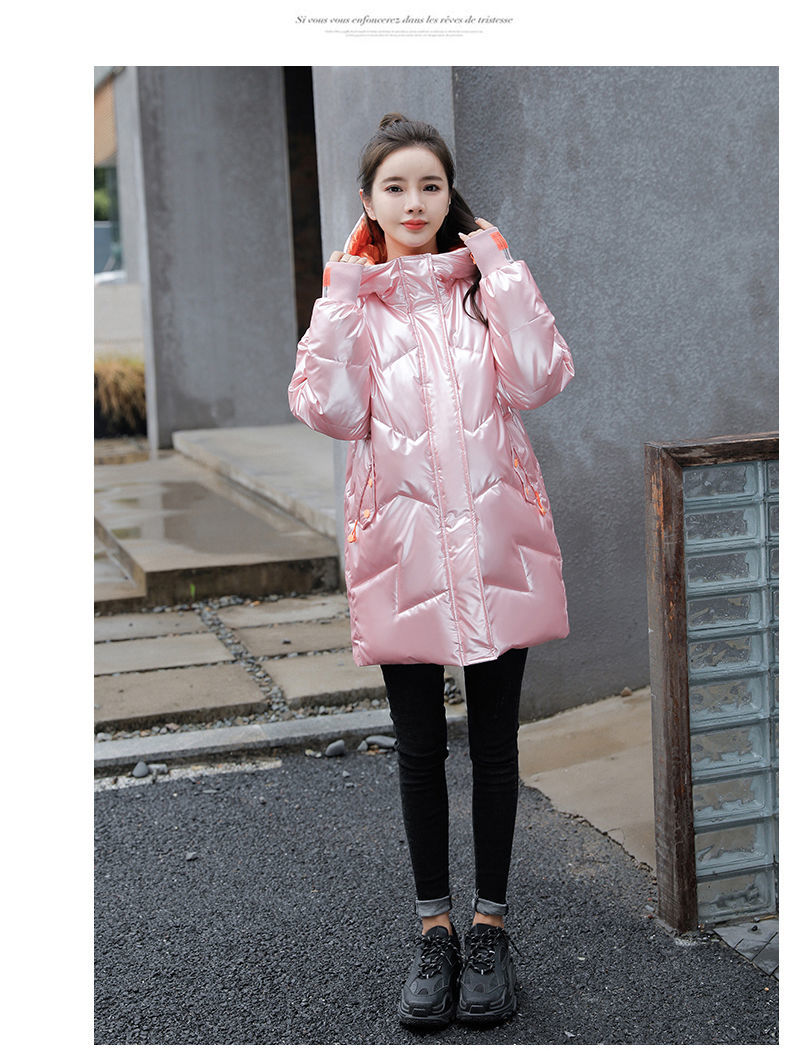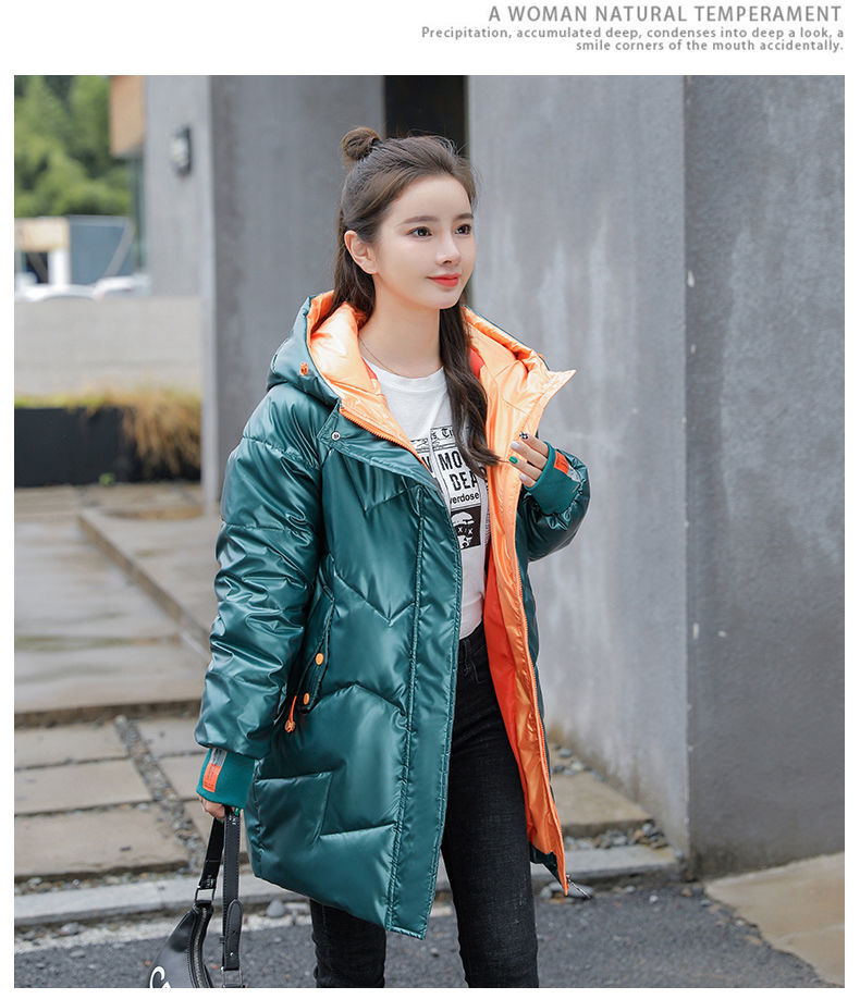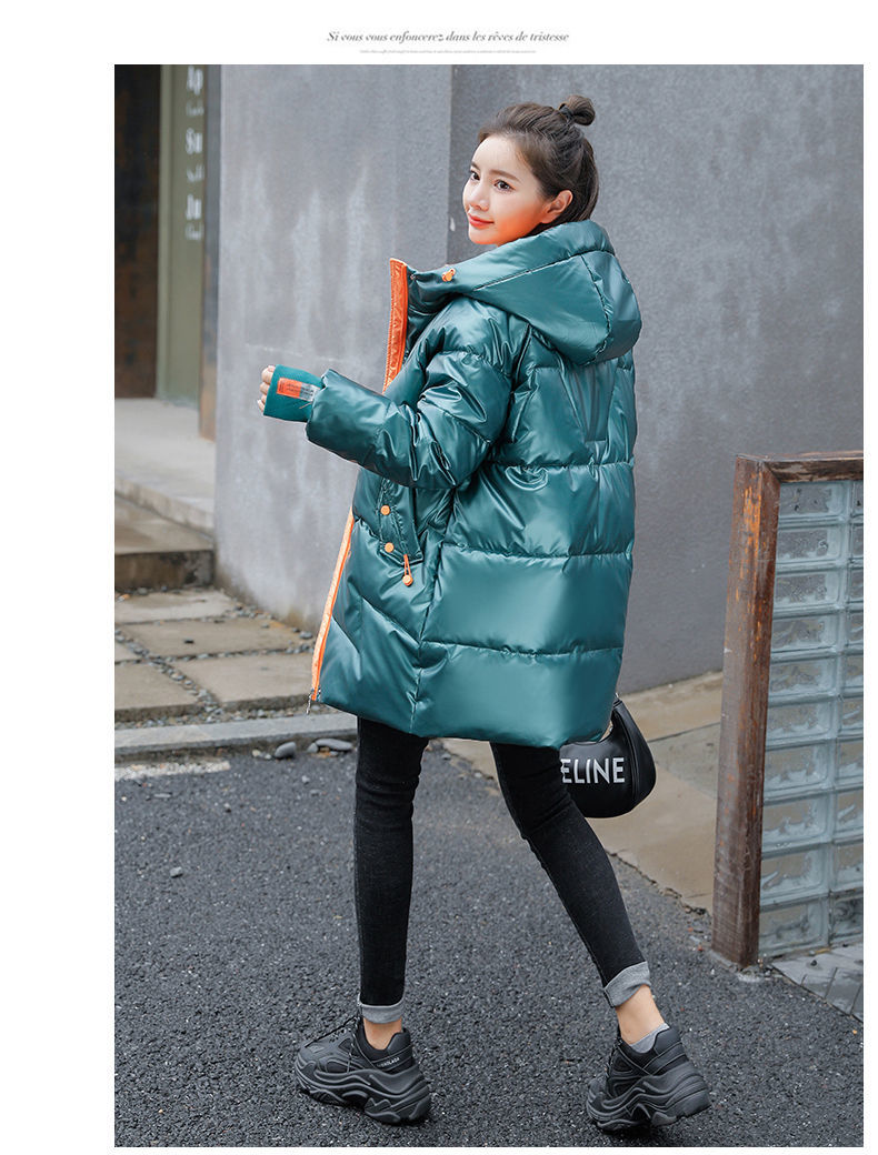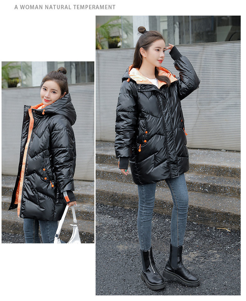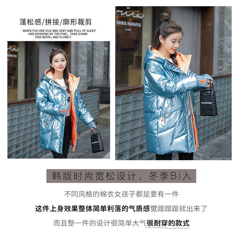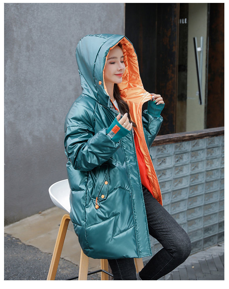 TZF-ZXQN211224新款韩版时尚气质宽松连帽长袖中长款撞色亮皮免洗棉服外套