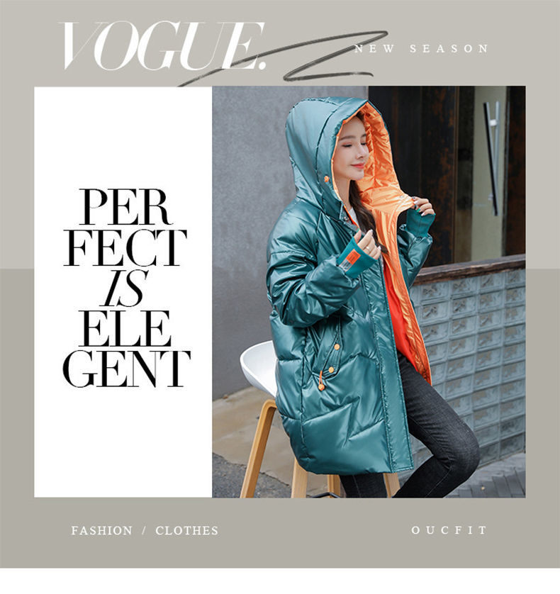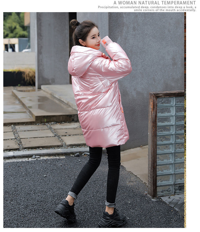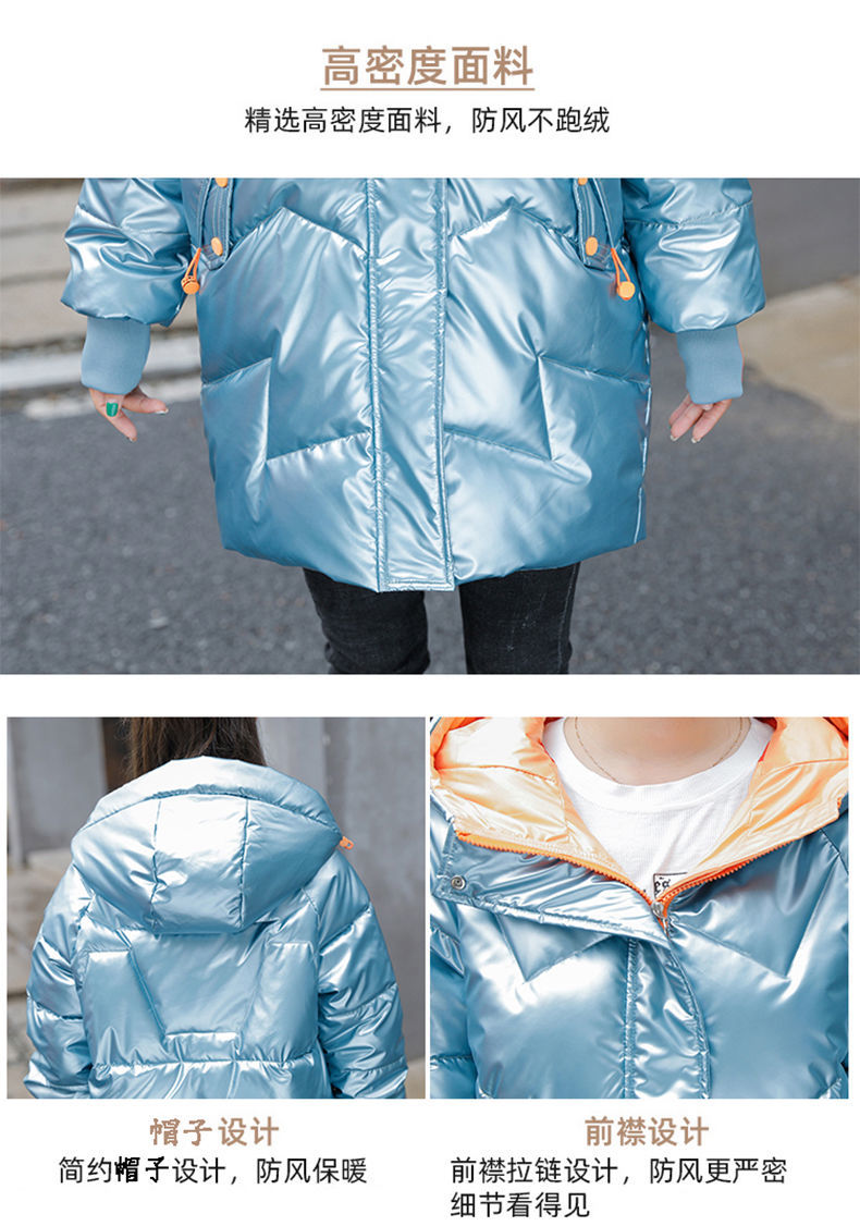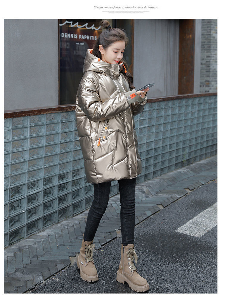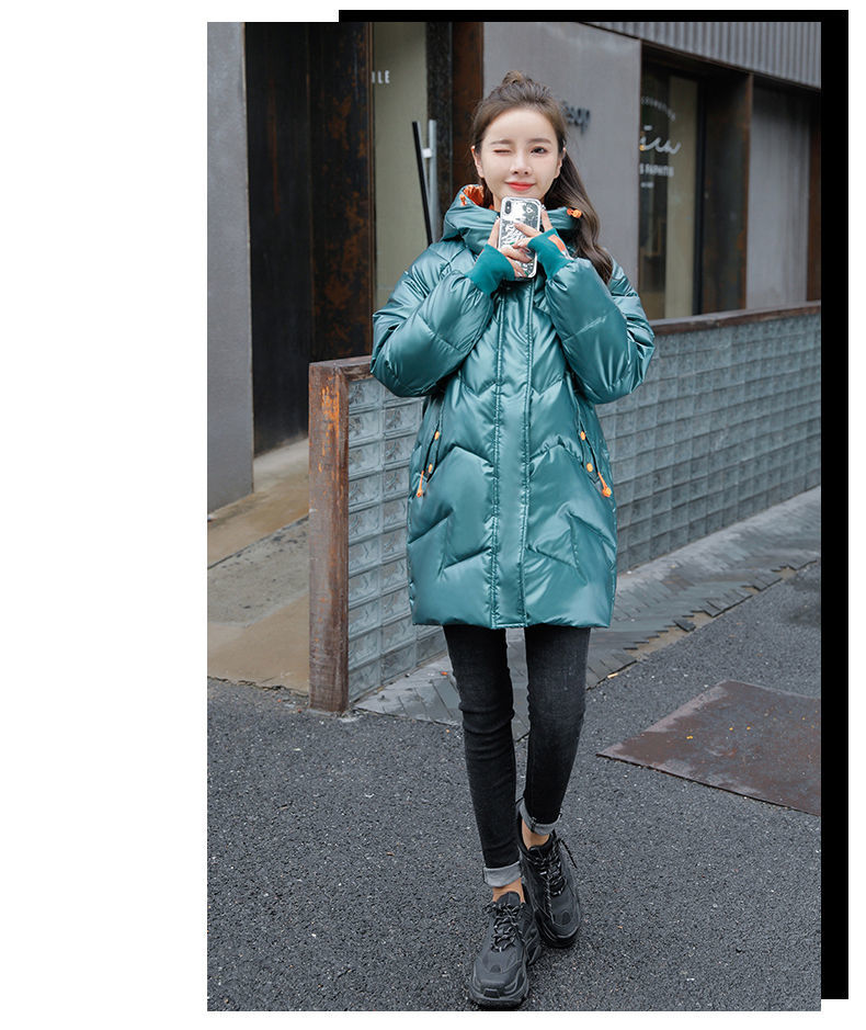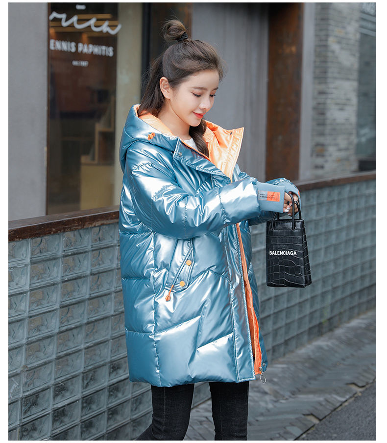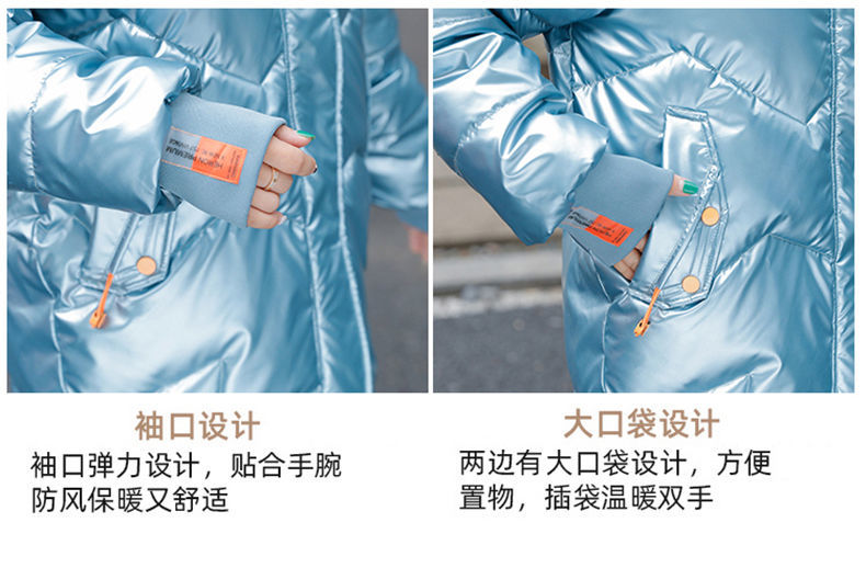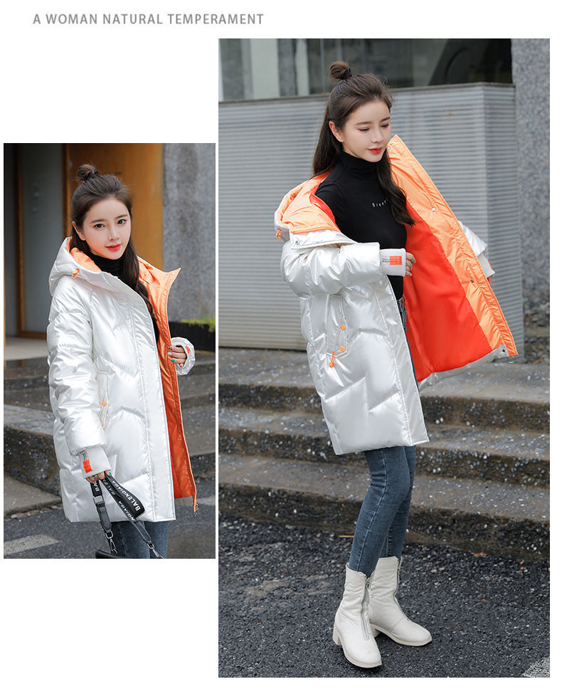 TZF-ZXQN211224新款韩版时尚气质宽松连帽长袖中长款撞色亮皮免洗棉服外套