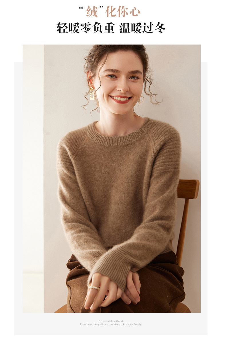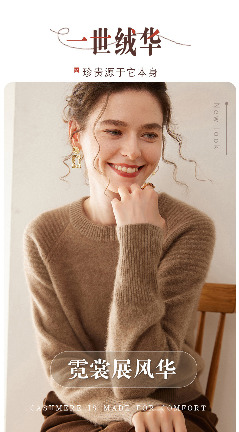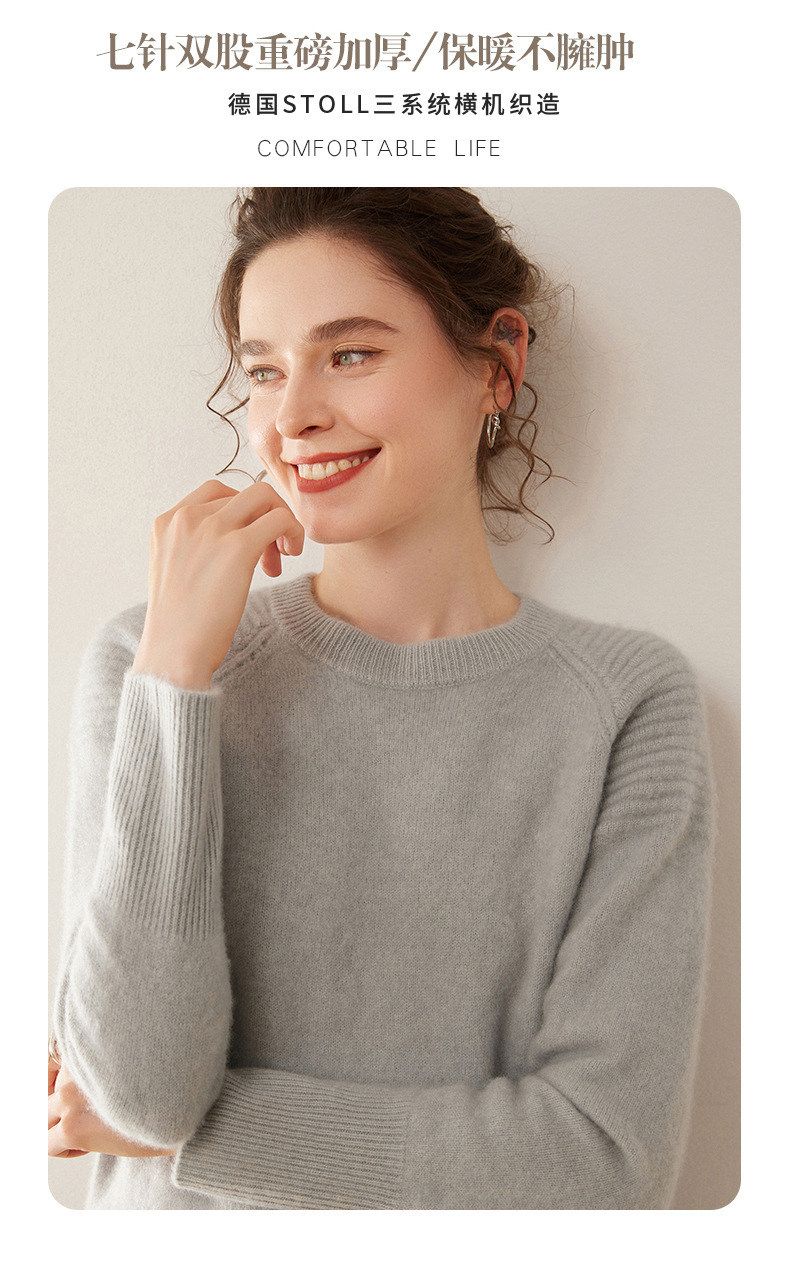 【高货QJ】全新升级【铂金会员441/天猫599/差价158】(34613) 洛诗琳双股加厚秋冬新款羊绒长袖圆领宽松百搭羊毛毛衣