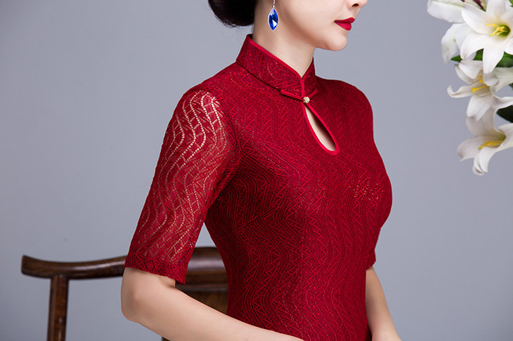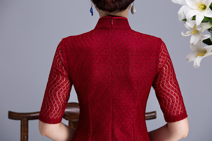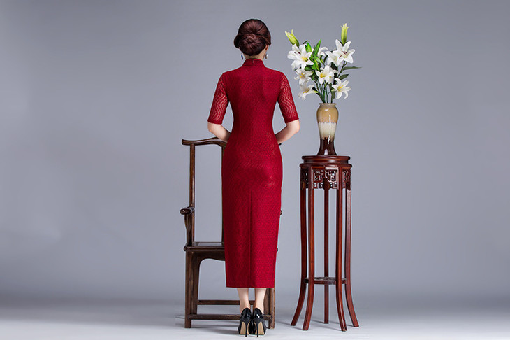 TZRY-2015新款日常复古旗袍高开衩时尚长旗袍 蕾丝连衣裙礼服旗袍