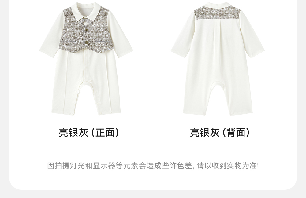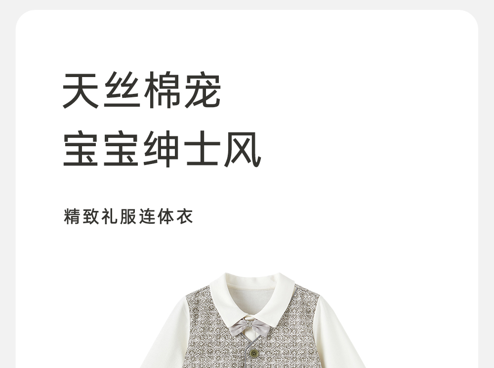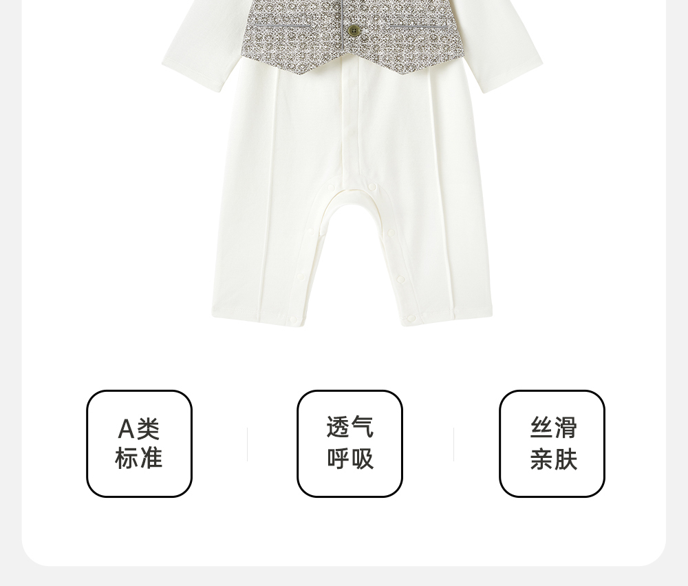 【高定系列】英氏婴儿连体衣春夏长袖桑蚕丝礼服连体衣男宝宝衣服