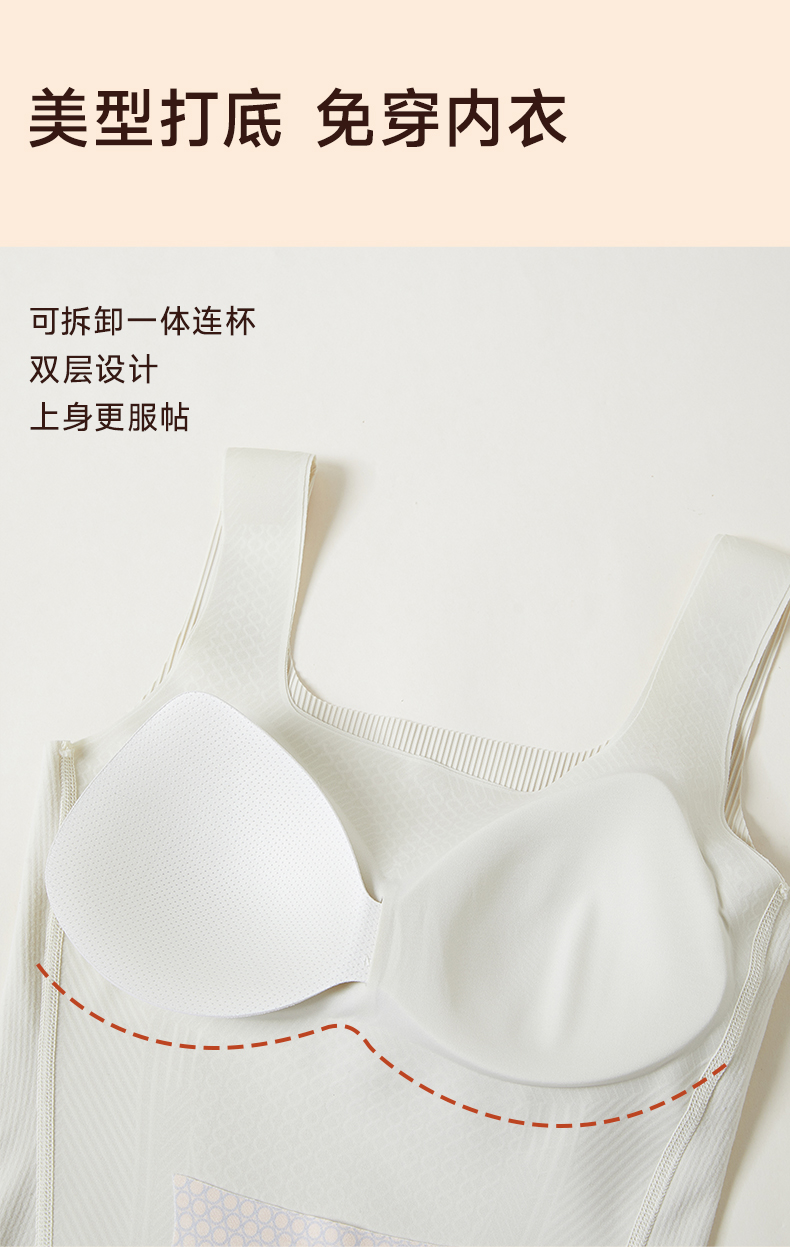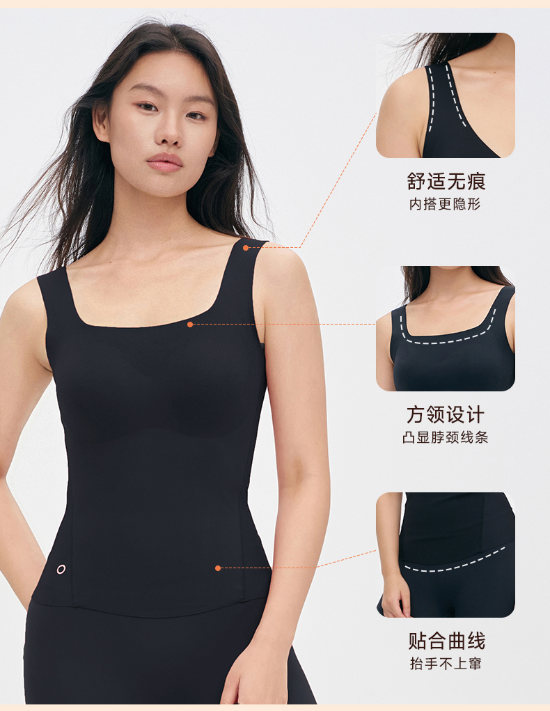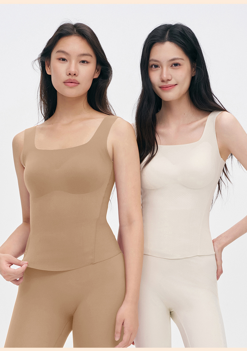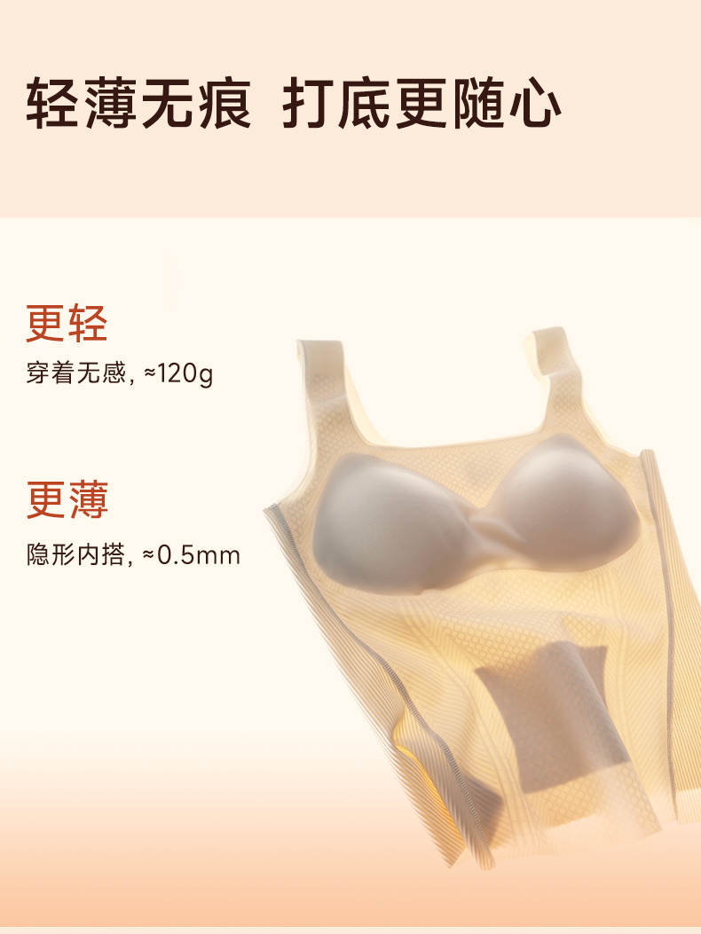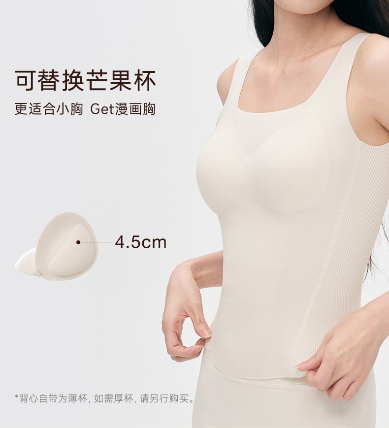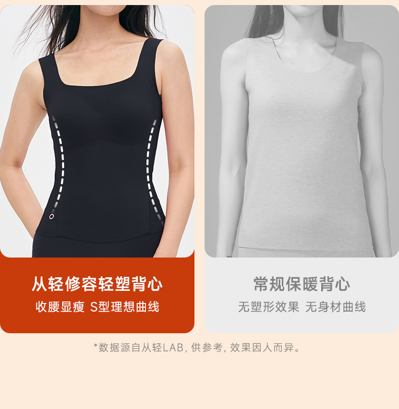 从轻 秋冬新品带胸垫一体式膨体热粒轻暖方领保暖背心