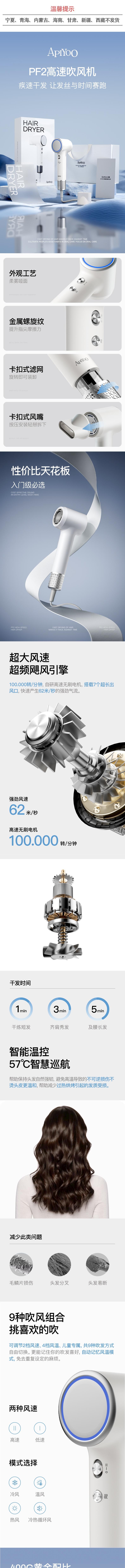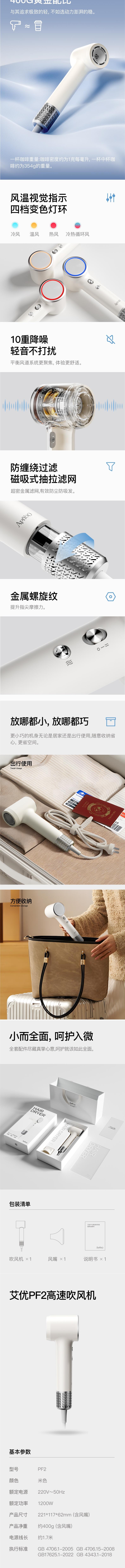 Apiyoo艾优 高速吹风机1200W PF2